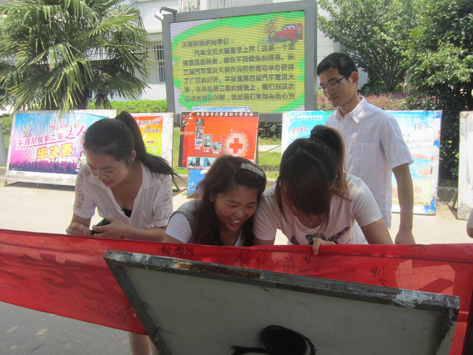 2013年6月3日,由汽车系举办的“诚信还贷,我来承诺”签名活动在梅园楼下吸引了众多师生的目光。短短几十分钟,5米长的横幅上就被老师和学生密密麻麻的签上了自己的名字。