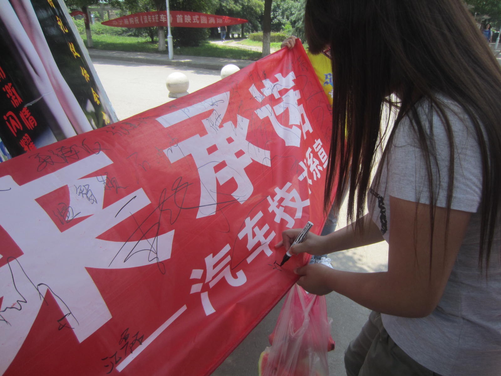 2013年6月3日,由汽车系举办的“诚信还贷,我来承诺”签名活动在梅园楼下吸引了众多师生的目光。短短几十分钟,5米长的横幅上就被老师和学生密密麻麻的签上了自己的名字。