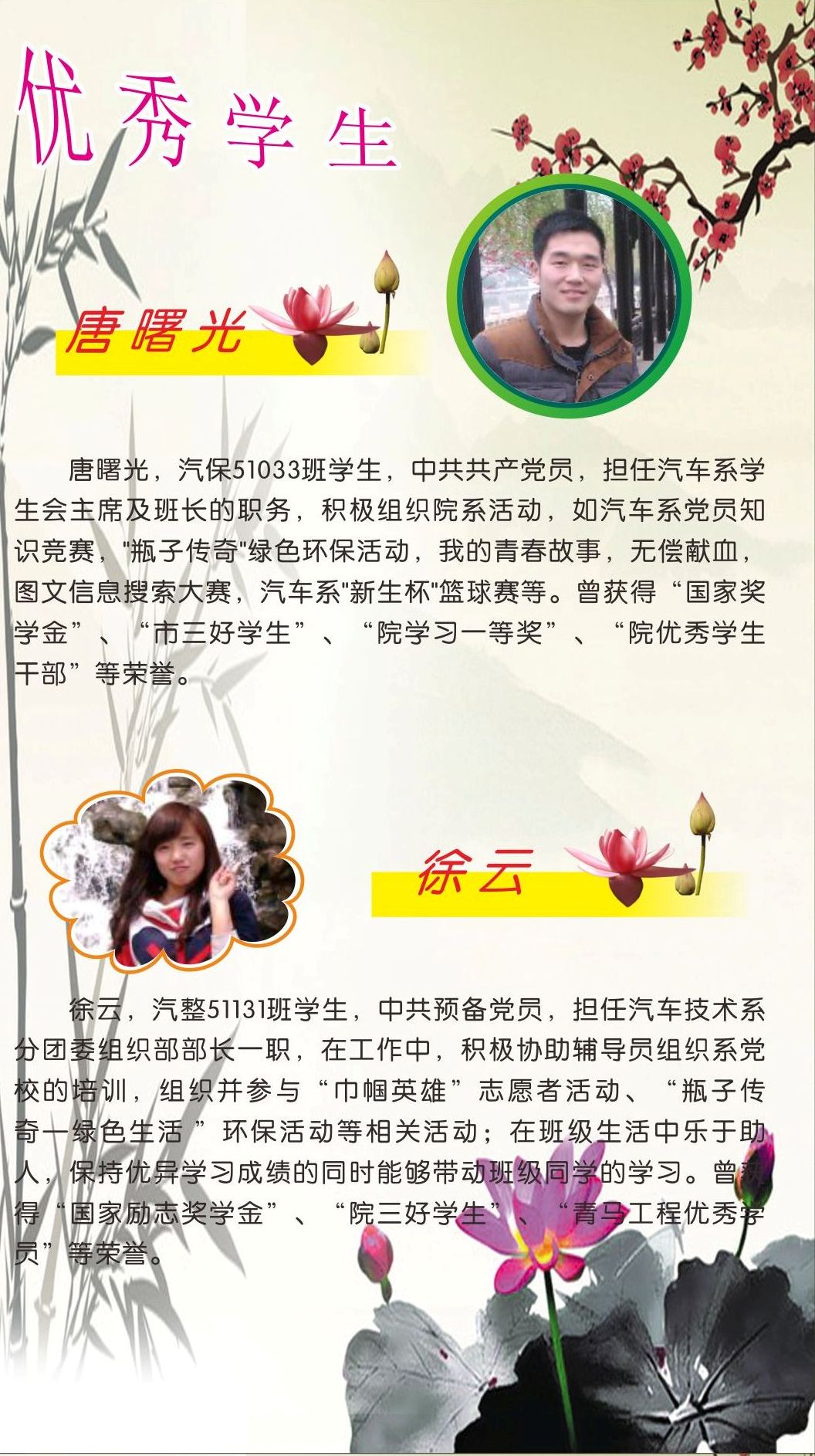 汽车技术系优秀学生展