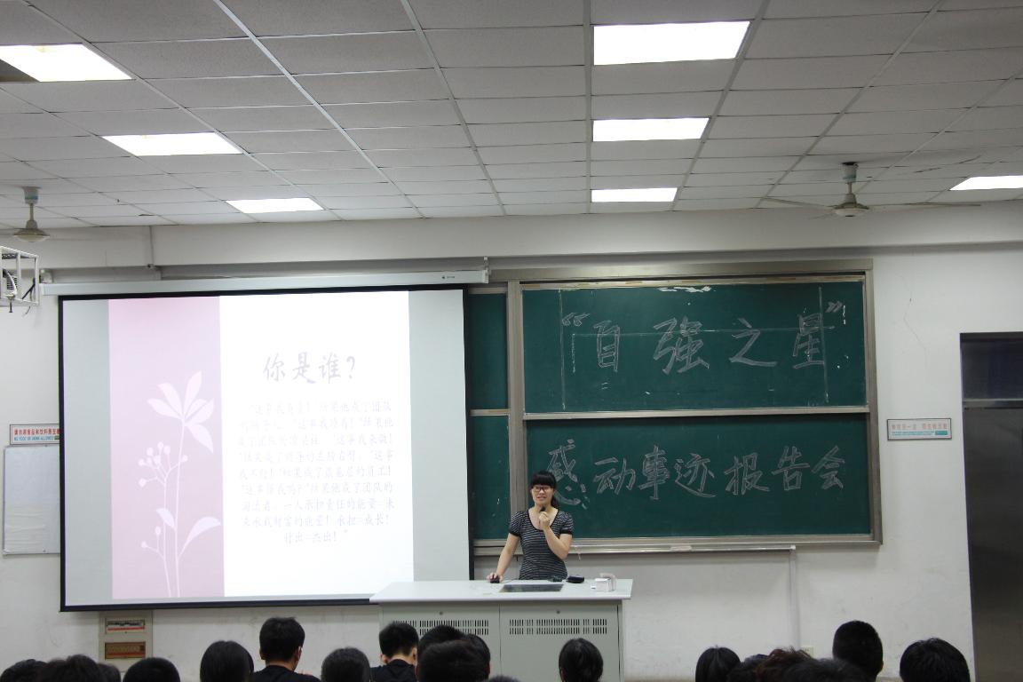 为了培养我分院学生的积极人生观、价值观,引导其树立远大的理想,激发汽车学子学习的动力和规划。2015年6月16日晚举行了“自强之星”感动事迹报告会,辅导员经卫国老师参加了本次报告会。全场报告精彩,掌声阵阵,听众受到一次深刻的心灵启迪。