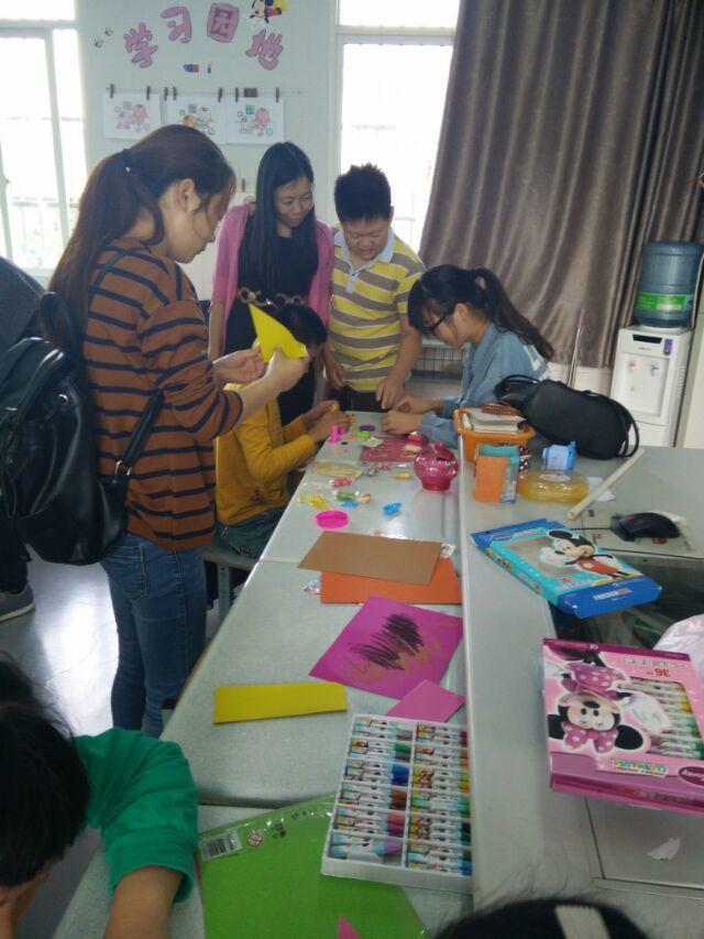 红十字会成员联合心理健康部及其他同学参与了此次志愿者活动,事前我们与学校的相关老师取得了联系,做了充足的准备,活动一开始就很快的融入其中。我们按照事前的安排为他们上了一节手工课。虽然事前有所准备,但是我们还是有所紧张。我们先给他们示范了如何玩橡皮泥和剪纸,孩子们学习的很快,甚至做的比我们还要好,他们没有吵也没有闹,很配合我们。一双双充满求知欲望的眼睛,一句句"哥哥好"、"姐姐好",无不让我们有所感动。给我印象深刻的是一个叫小伟的小男孩,他不会说话,不吵也不闹,当我手把手教他橡皮泥的时候,他听的很认真,临走之前,他拉了我的衣角,将他亲手做的一个小兔子送了我,我笑着蹲下摸了摸他的头,他对我笑笑,并在我的脸颊上留下轻轻一吻,我当时眼泪就流了下来。虽然他不会说话,但我能体会到他内心深处的那份喜悦与兴奋。