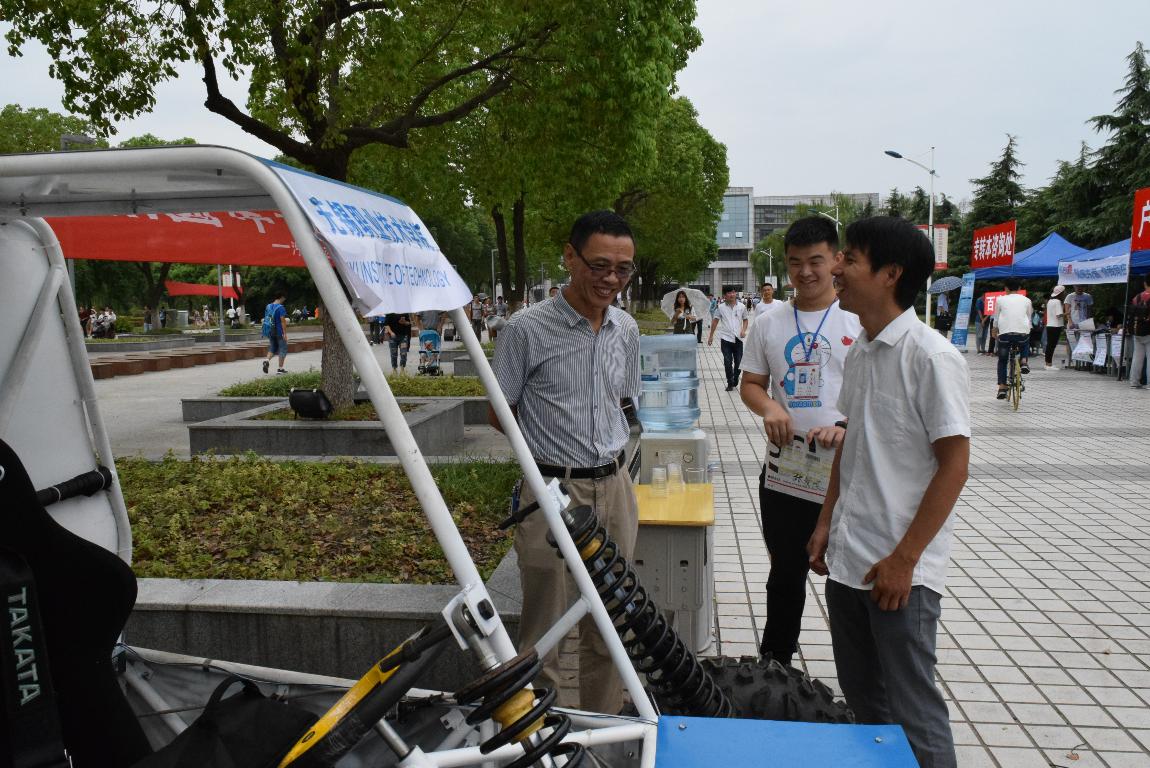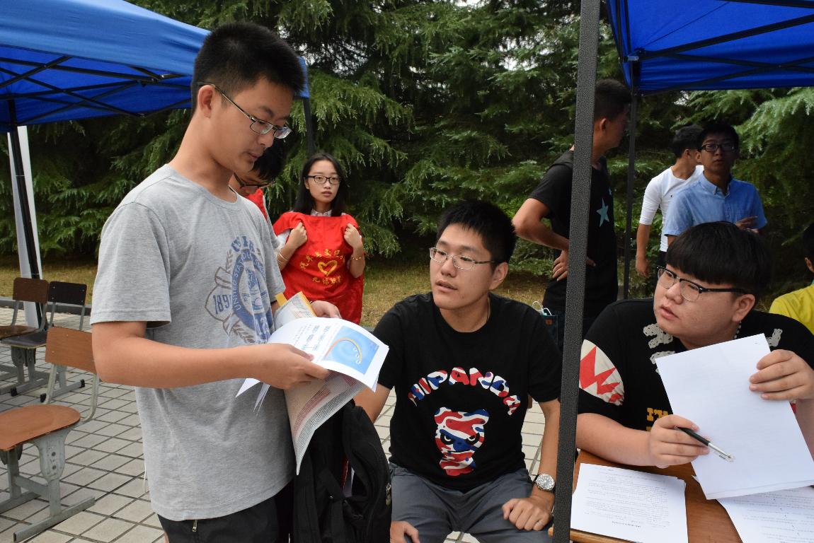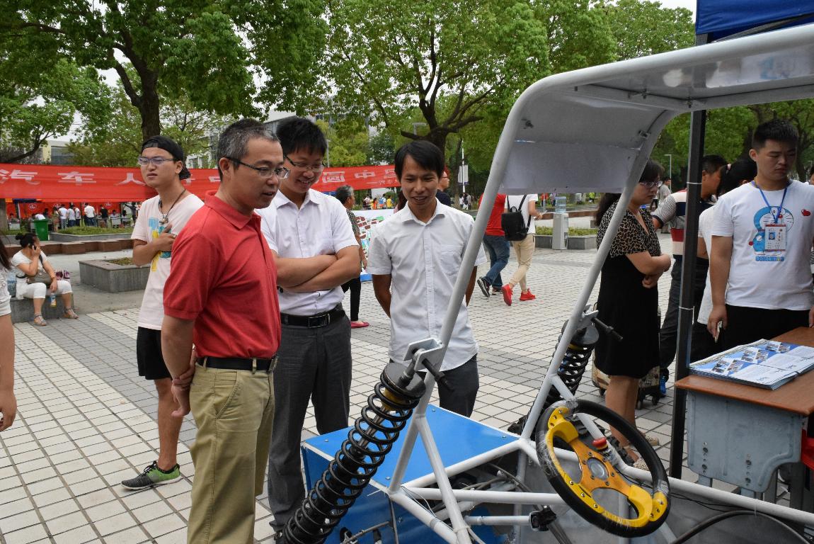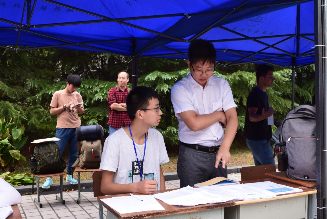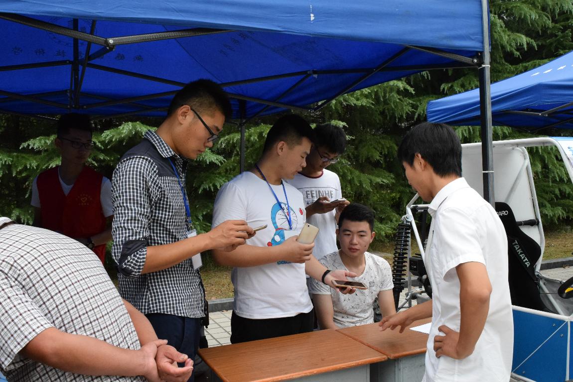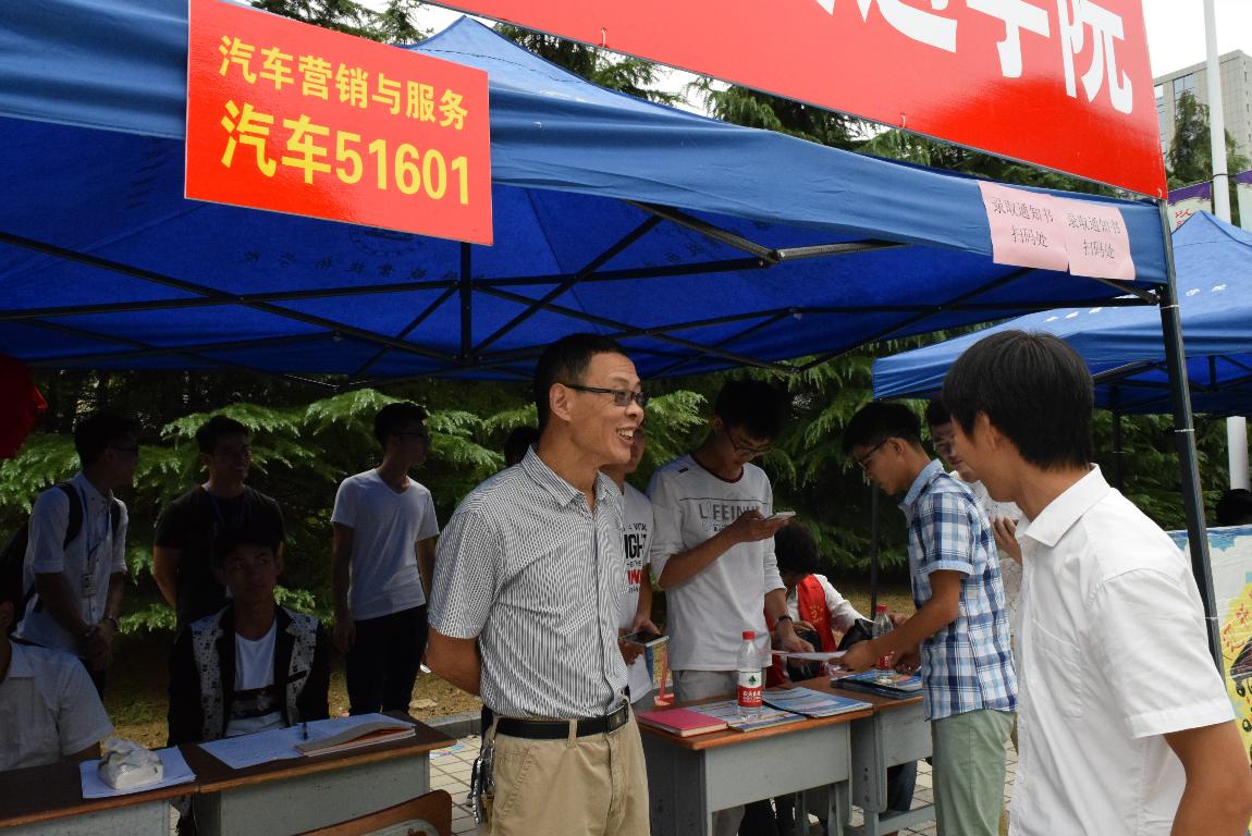 按照迎新方案的部署,分院党总支书记郭再泉老师,学工办主任徐锋老师,辅导员经卫国、高娜娜老师和学生会各部门干事早早就来到迎新处,与新生、家长亲切交流,勉励新同学。郭书记再三强调,要将新生迎接工作落实到位,突出分院特色,将志愿精神发扬光大。迎新的第一天,天空还飘着绵绵细雨,但是微凉的天气依然挡不住校园沸腾的气息。分院领导及学生会干事现场指导整个迎新工作,他们耐心向新生及新生家长讲解学院概括,专业设置和培养计划,使新生对自己所学的专业有了一定了解。值得一提的是,为了展现分院的特色与活力,Mustang车队也展示了自主研发的赛车,吸引了校领导、老师以及新生的观摩参观。