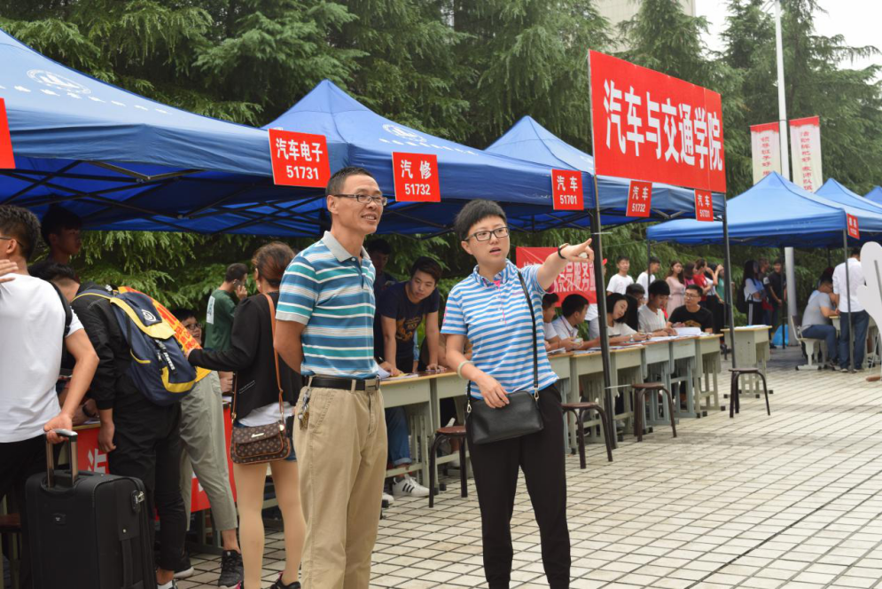金秋送爽,丹桂飘香。载着父母的深深期盼,玛雅吧 汽车与交通学院于2017年9月10日迎来了17级450名新同学,按照迎新方案的部署,分院党总支书记、院长郭再泉,学工办主任徐锋,辅导员徐海楠、高娜娜老师、各班班主任以及分团委学生会各部门迎新志愿者早早来到了迎新现场。迎新现场,志愿者们不辞辛苦,主动引导新生前往报到地点,协助办理报到手续,在引路途中主动帮忙拎行李,给新生答疑解惑,展示志愿者风采。在每位志愿者的辛勤服务下,报到工作井然有序进行,每位新生顺利完成了报到工作。同时,各班班主任耐心向新生及其家长讲解学院概括,专业设置和培养计划,使得新生及其家长对学院有了快速的了解。同时,为了展现分院的特色与活力,Mustang车队也展示了自主研发的赛车,吸引了新生及其家长的观摩参观。