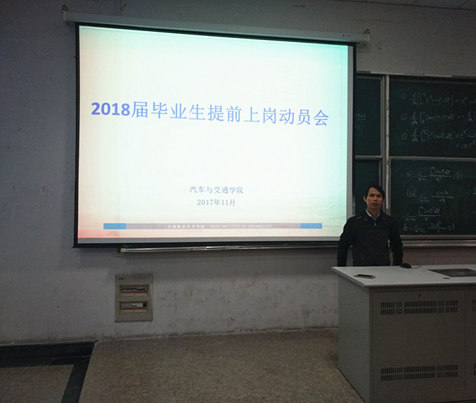 在2018届毕业生即将进入校外实习之际,为做好毕业生的就业实习相关工作,汽车与交通学院于2017年11月22日下午在J9-101举行了2018届毕业生提前上岗动员会。本次动员会由学院就业工作负责人徐锋老师主讲,学院150余名毕业生参加。