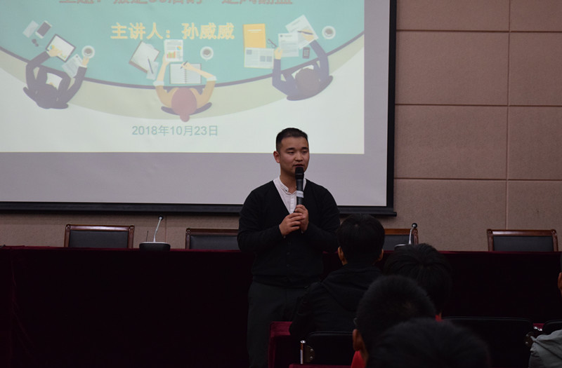 在随后的讲座中,孙威威以欧尚金牌讲师的风范面向在场的学生展现了一个专科学生成功逆袭欧尚中国总部市场部经理,成为人生赢家的光辉历程。他以幽默风趣而又不失严谨的方式讲述了自己大学生活曾经遭受的挫折,但是他毫不气馁,给自己立下了大学三年在校的十大目标,最终通过自己的努力实现了梦想。初入职场,尽管遭遇学历上的不公正对待,他毫不放弃,充分展示自己的实力,成为了当年欧尚华东区录用的唯一一名专科学历的见习经理。在职场上,他认真向前辈学习,积极融入团队,努力拼搏成为团队的主力,先后担任欧尚超市部门经理、华地集团大统华超市事业部高级营经理、欧尚中国区培训学院教官、欧尚中国市场部首席营运经理,并获得欧尚中国优秀部门经理、欧尚中国金牌教员等荣誉称号。