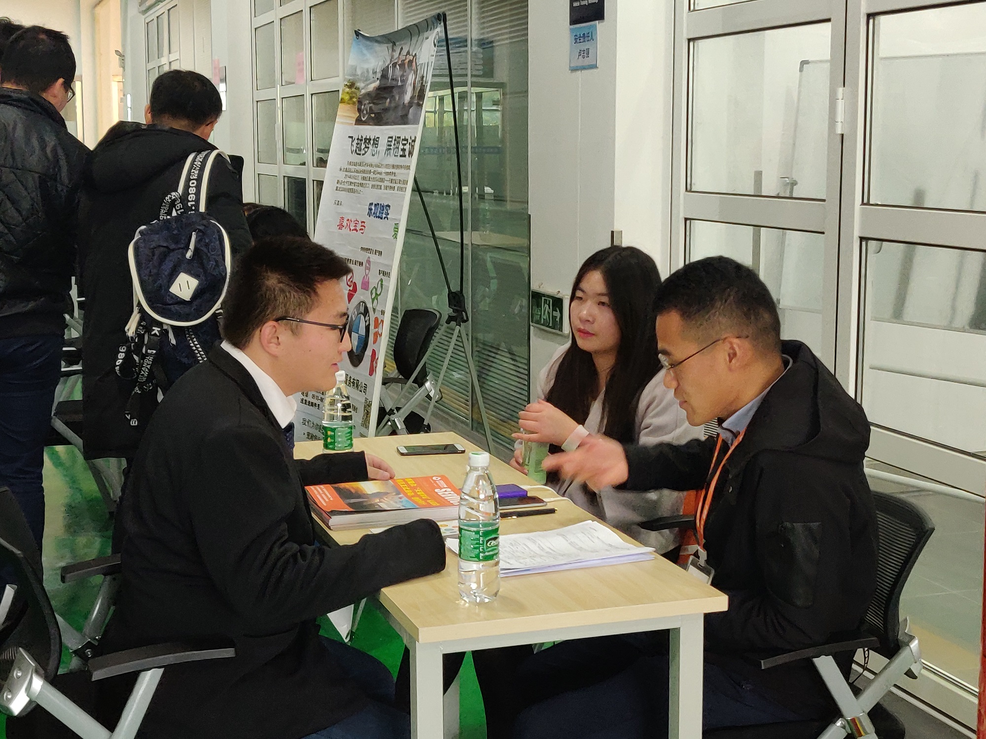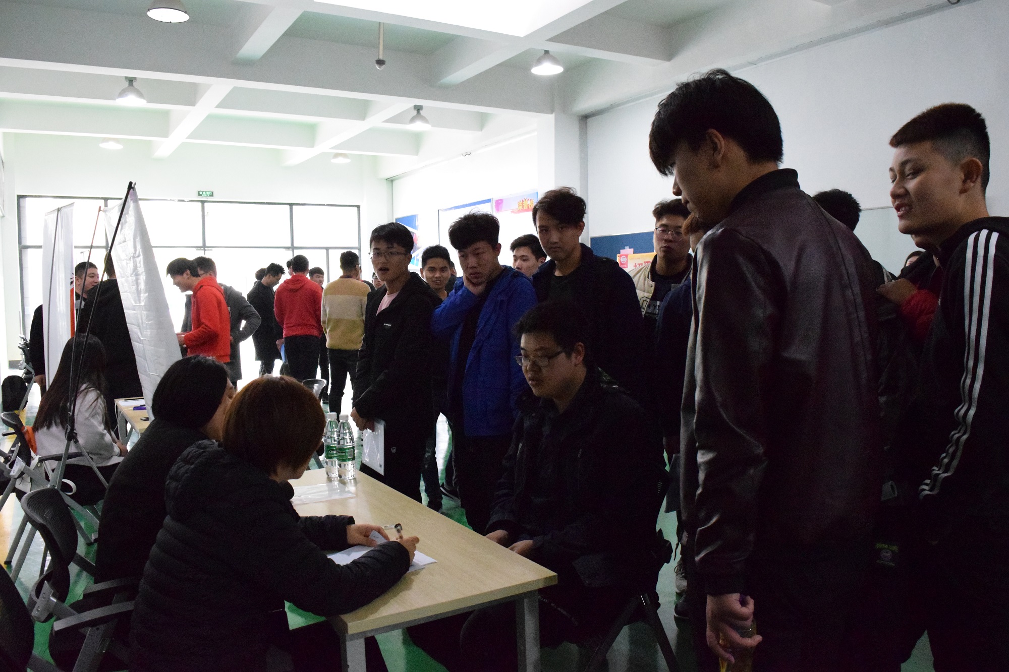 此次共有十余家企业参与招聘,在志愿者的服务下,每个公司的招聘人员都井然有序的进行了招聘会的准备工作。在招聘会上,毕业生们准备了简介,和招聘的公司进行了面对面的交流。来到这次招聘会的不仅有在校毕业生,还有许多在校的学生来学习观摩。这使得本次招聘会进行的更加精彩。