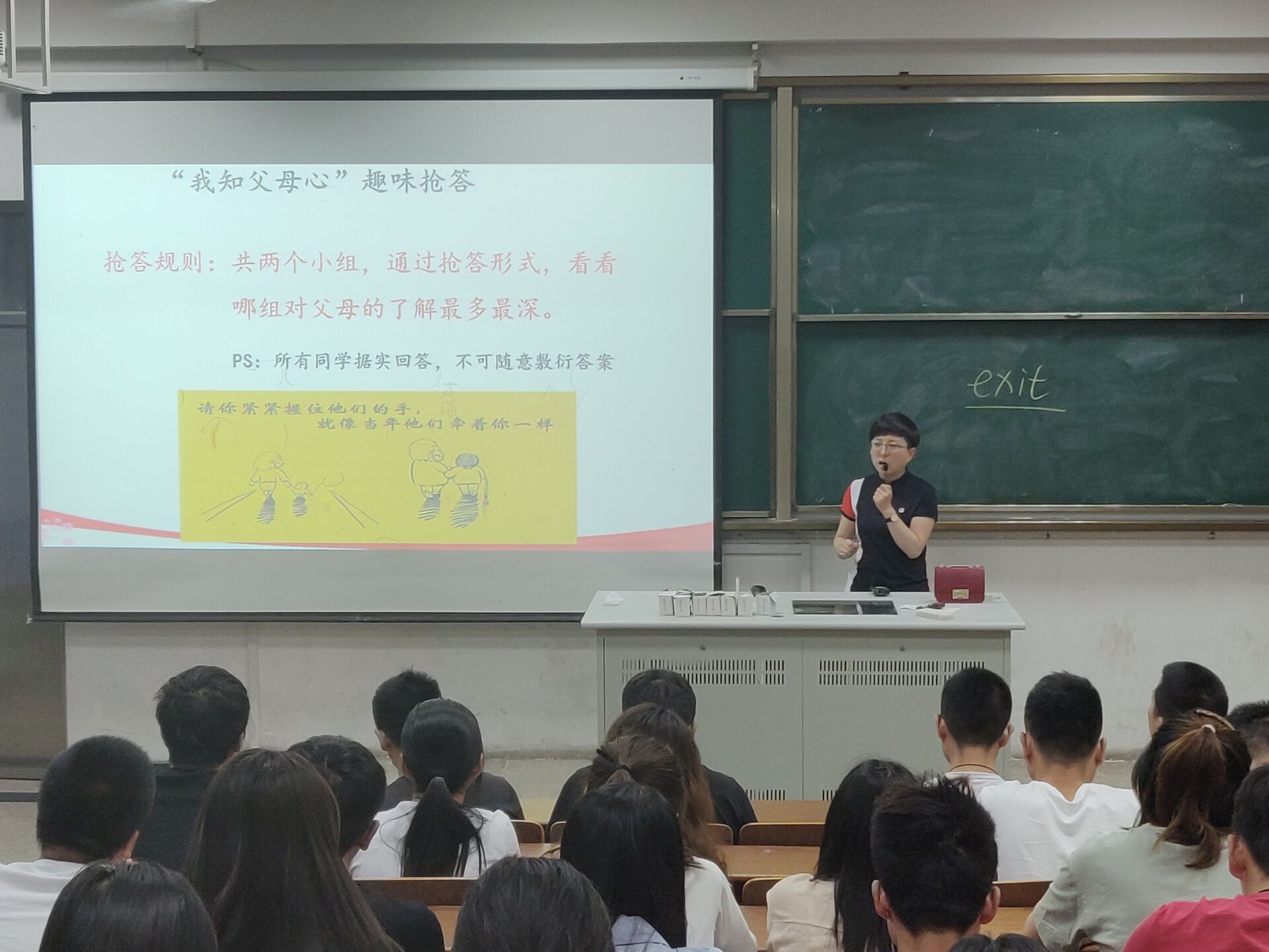 为引导学生体会和感受父母的养育之恩,表达对父母的感恩之情,践行对父母的感恩之行,引导我们的同学珍爱生活、感恩父母,以及在生活中始终保持一颗感恩的心。徐海楠老师于2019年5月29日在教8-402开展了“孝道在我心——中华传统孝道美德教育”主题教育。