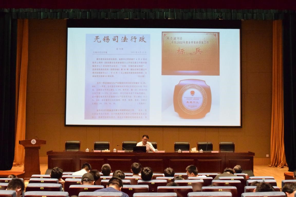 5月30日下午,由学生处、校友办、汽车与交通学院联合举办的“母校有约”校友论坛系列活动第三讲报告会在综合楼一楼报告厅举行,我校汽车861班毕业的杰出校友,无锡市江南公证处主任吴志波先生主讲,来自汽车与交通学院150多名师生参加本次讲座活动。