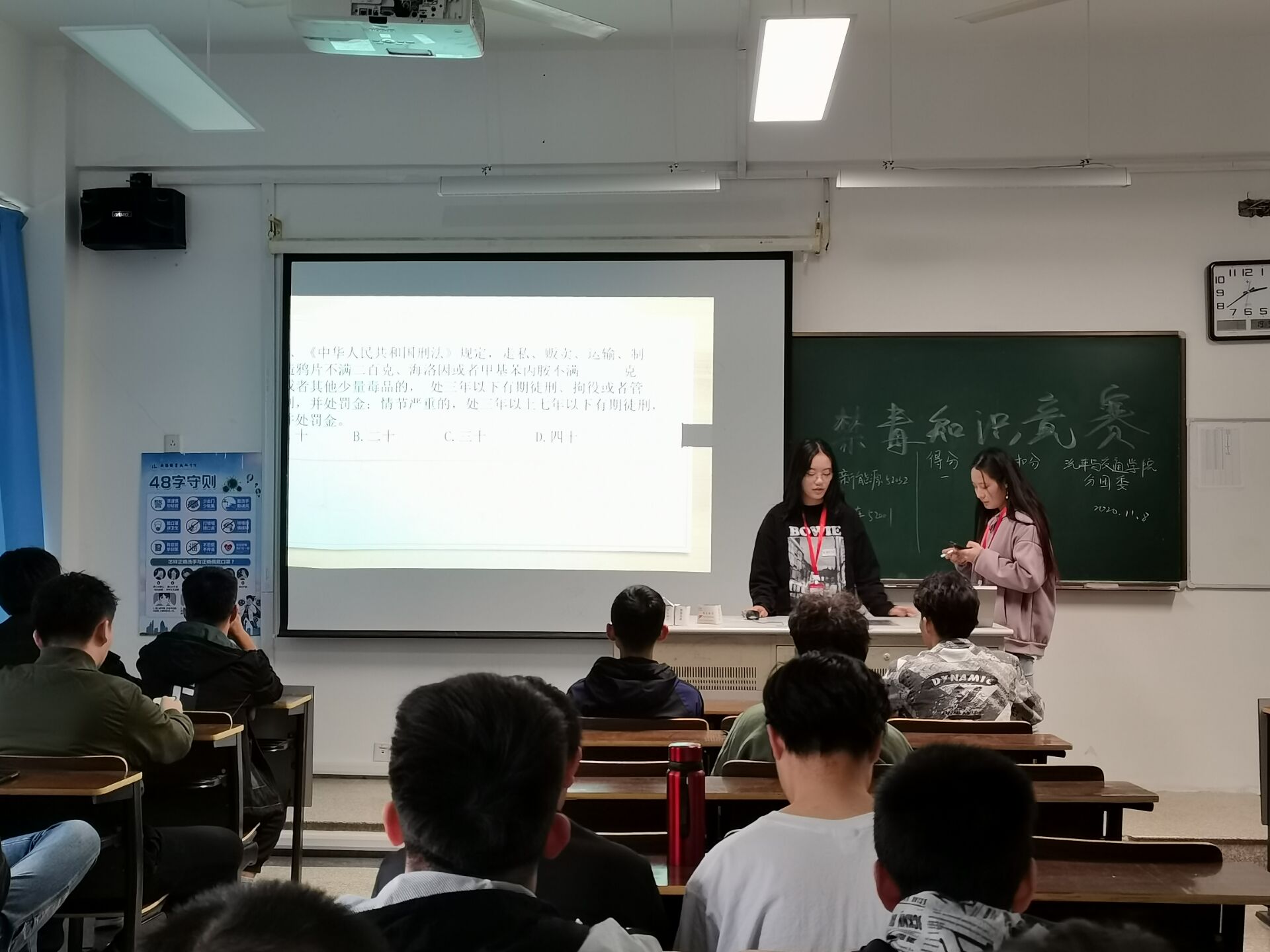 为了不断增强学生认识毒品,拒绝毒品,防范毒品的意识,11月8日两点半,汽车与交通学院分团委在教5一楼举办“禁毒先锋”主题文化知识竞赛。