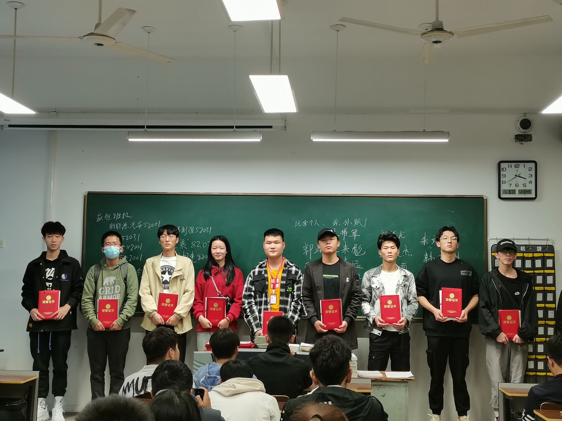 活动刚开始,主持人为禁毒竞赛致辞,要求同学们学会增强自我保护意识,坚决远离毒品危害,积极养成健康的生活学习习惯,树立正确的世界观、人生观和价值观,珍爱生命、远离毒品,做一个遵纪守法、自尊自爱的好学生。此次禁毒知识竞赛采取积分制,以班级形式参赛,赛制采用加分制,答对加一分,答错减一分。内容涉及禁毒有关的法律法规、毒品的知识及危害等方面的常识。经过激烈的角逐,现场决出了优秀班级奖,优秀个人奖,并为这些优秀的班级和个人颁发了奖状和荣誉证书。活动结束后,参赛人员和学生会组织人员在“禁毒先锋”的红色横幅下合影留念。