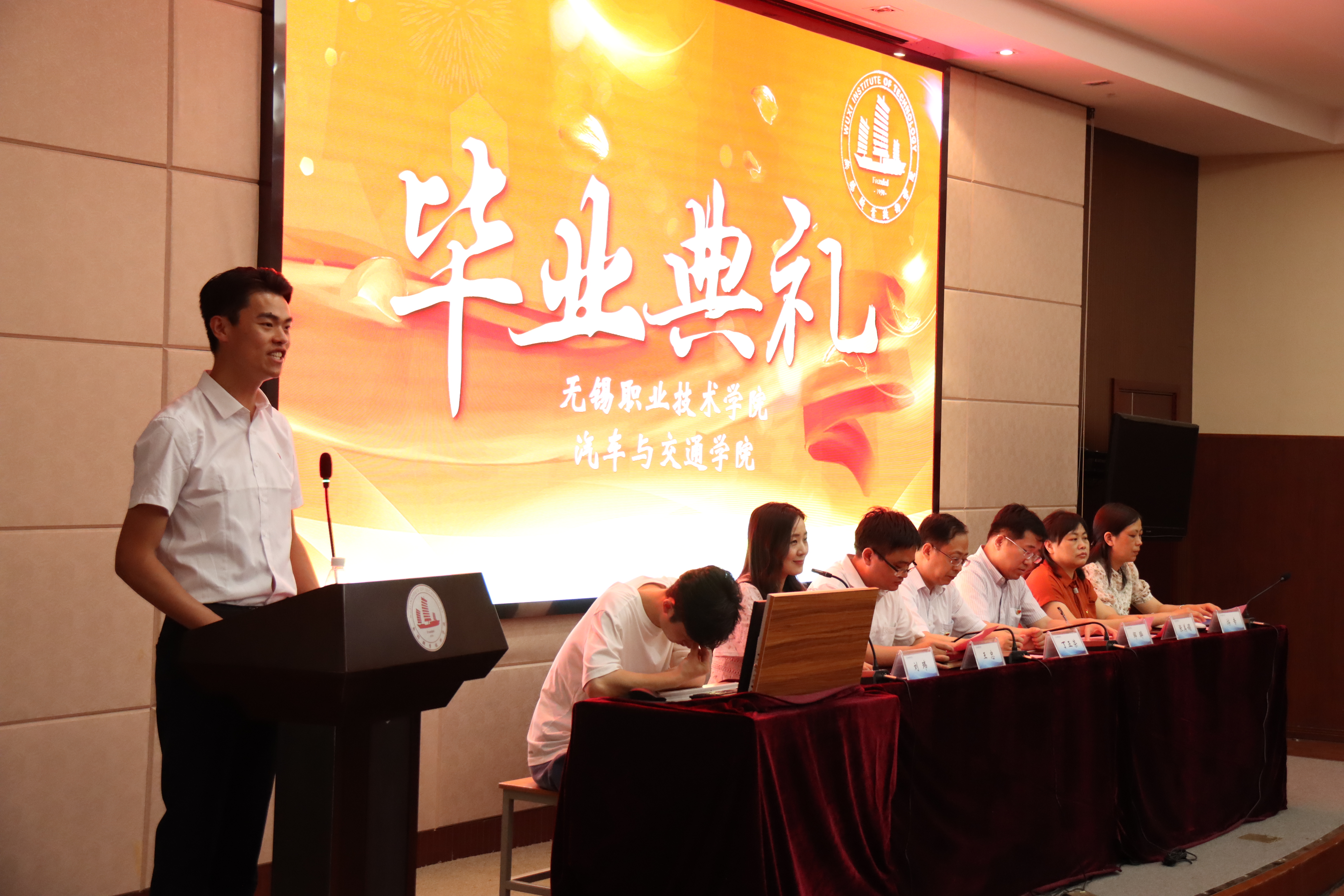 汽车学院党总支书记兼院长邹晔教授对前来参加毕业典礼的同学们表示感谢,并向毕业生表达了“三个祝”:一祝贺同学们顺利毕业;二祝福同学们找到称心如意的工作;三祝愿同学们诸事顺利。邹晔教授从“自我管理”和“职业发展”两个方面出发,希望毕业生一要保持纯真善良的本性,坚持踏实做事、老实做人;二要充满激情和正能量,做责任、有能力、有思想、有追求的时代新人。同时,他还真诚邀请毕业生在不断取得新成绩的同时,常回家看看!