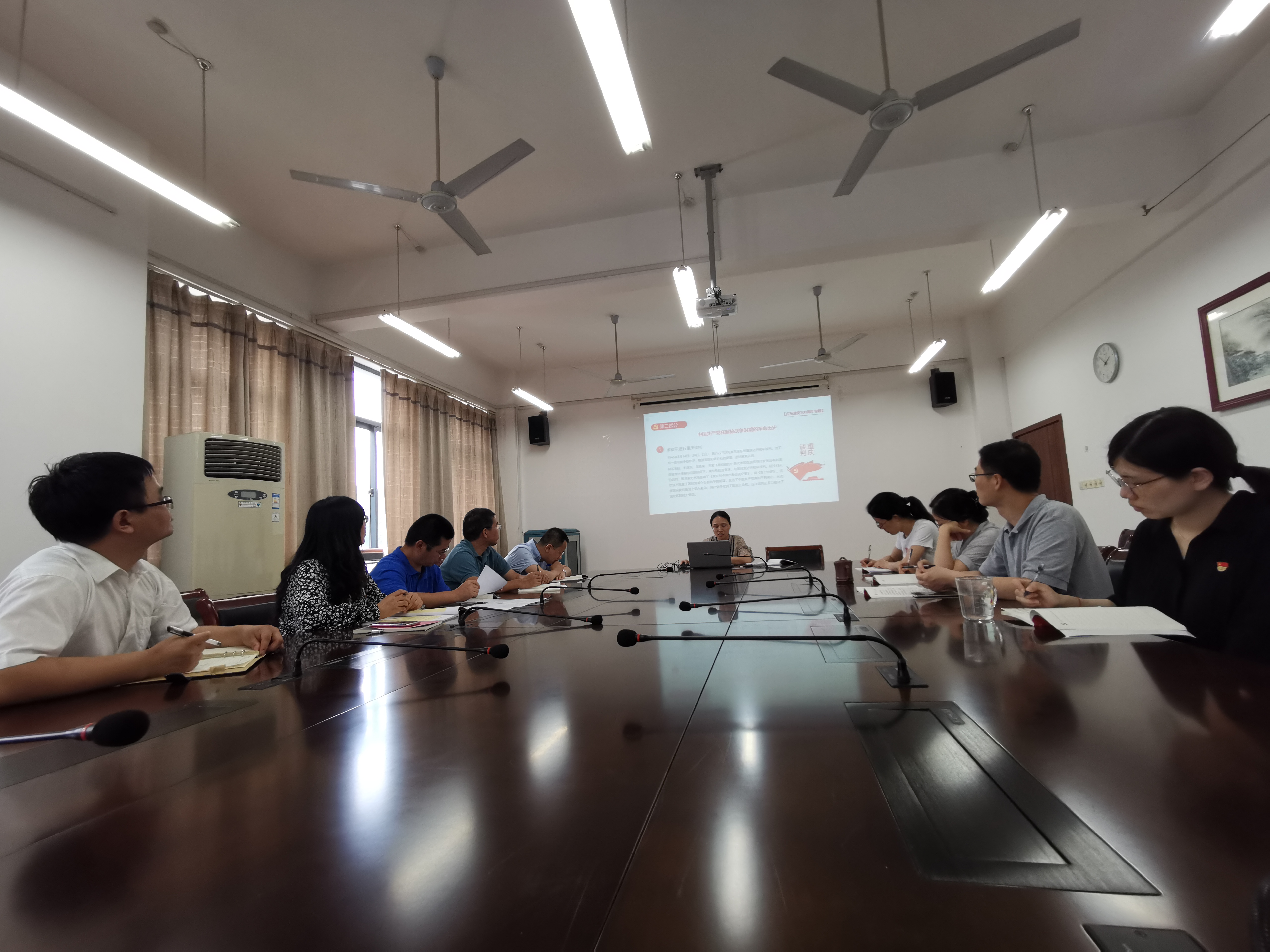 陆玲亚分三部分介绍了百年党史,再现党艰辛而辉煌的风雨历程。深刻体会中国共产党今天取得的辉煌,为明天取得更大的辉煌提供了前提,创造了条件,奠定了基础。各位老师纷纷表示,在今后的工作生活中不忘初心、牢记使命、永远奋斗,为谱写新的篇章、创出新的辉煌而努力奋斗!