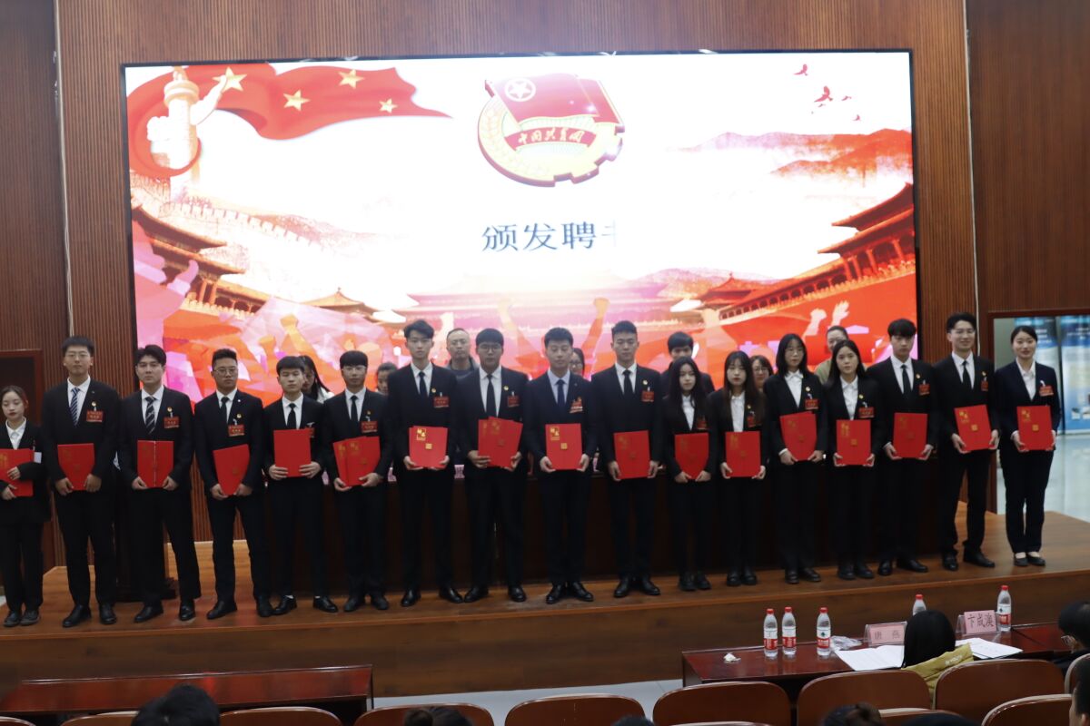 随后,各位领导老师为第六届分团委学生会成员们颁发聘书与荣誉证书,表彰他们在这一年来的辛苦工作,获奖同学在师生热烈的掌声中领取了荣誉证书并合影留念。