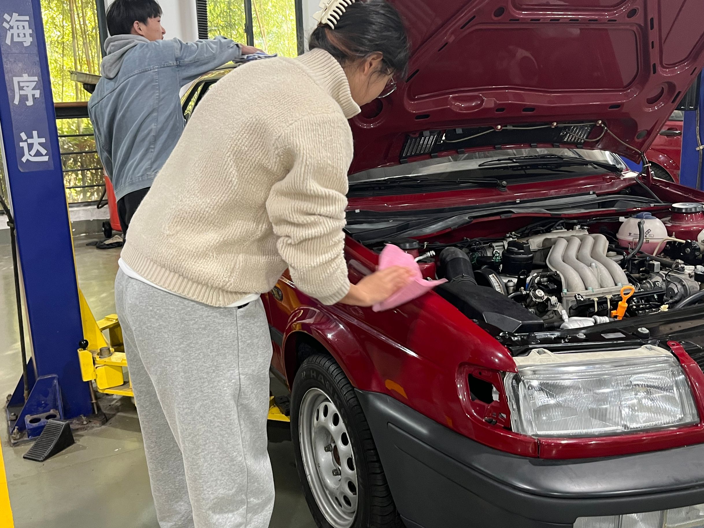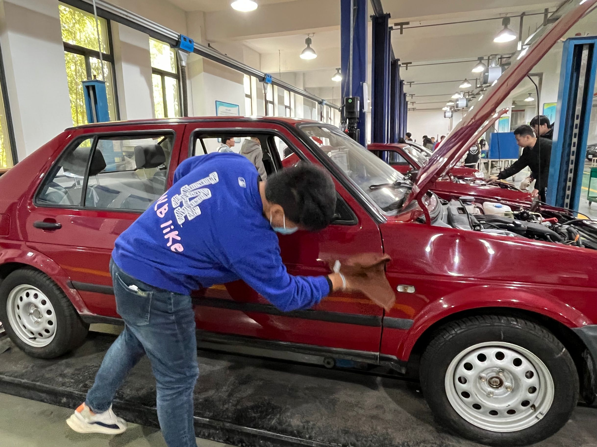 本次活动主要内容是擦拭汽车教学大厅内所有教学用车辆以及车辆举升机,并清扫了遗留在教室各个死角位置的垃圾和各教室的垃圾桶。志愿者以认真诚挚的态度对待着本次活动,整个活动过程,他们没有休息,没有抱怨,从始至终保持一种积极昂扬的态度,他们每一次弯腰的姿态写满了认真和努力。在各位志愿者的共同努力下,圆满地完成了本次服务活动。