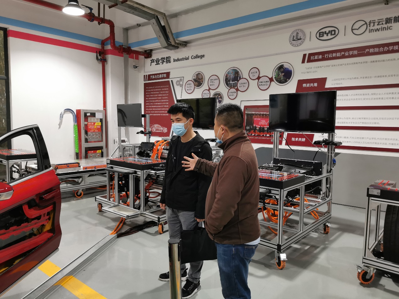欢迎会结束后,实训部主任王树云陪同程老师参观了分院的汽车技术中心。