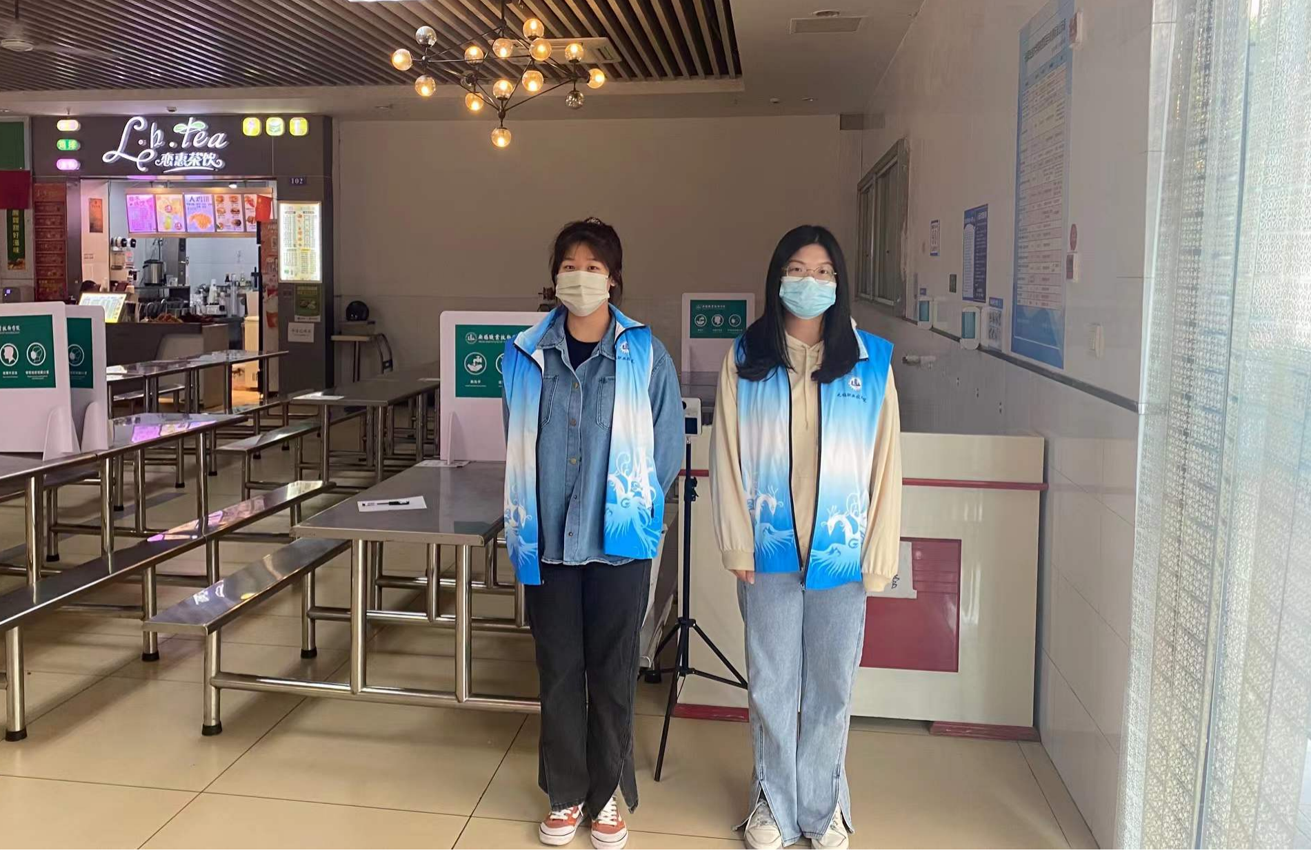 活动从5月16日中午到5月18日中午,两人为一组。活动期间,志愿者们身着蓝色马甲,佩戴口罩,手拿标语牌,在食堂开放时间站岗于餐厅内外,工作过程中积极热情地为大家服务,维持疫情期间食堂的就餐秩序。志愿者们提醒就餐同学间隔就坐,同时提醒排队取餐的同学保持秩序、佩戴口罩。“同学,请佩戴好口罩”“同学,请排队就餐”“同学,请保持有效距离”同样的话语一天两次、每次一小时。同学们积极配合,时刻谨记“不聚集、不扎堆”,人人保持一米间距,做好个人防护,营造“常态化防疫、全民戴口罩”的浓厚氛围,进一步落实疫情防控政策,强化学生自我防范意识。