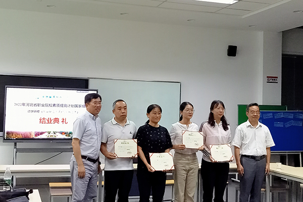 8月5日,由河北省教育厅主办,我校承办的2022年河北省职业院校教师素质提高计划“访学研修(汽车制造类)”国培班在汽车与交通学院奔驰教室S112举行结业典礼。继续教育学院院长崔平、汽车与交通学院院长邹晔参加结业典礼,典礼由邹晔主持。