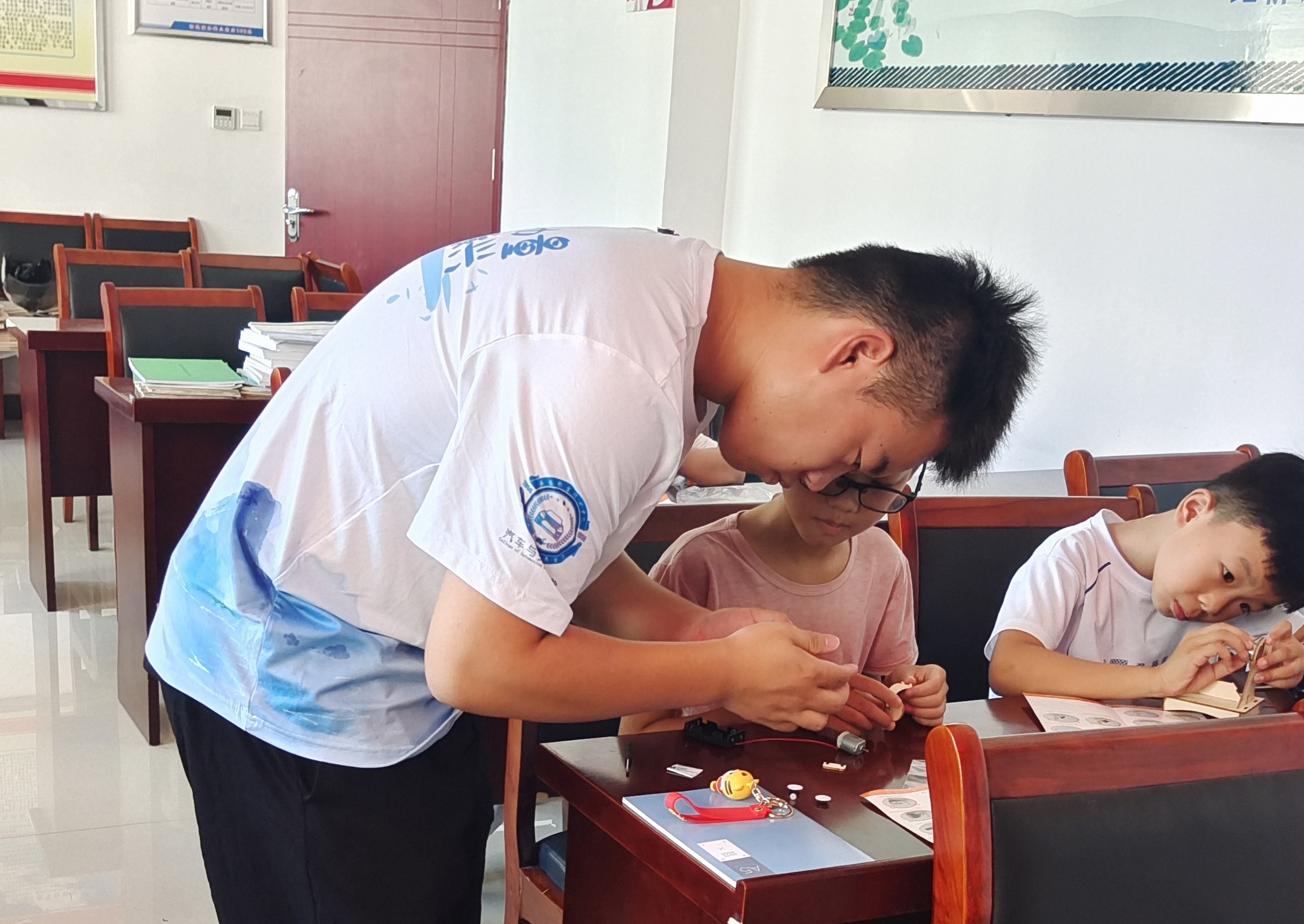 为了进一步提升留守儿童的创新思维和动手能力,让留守儿童感受科技魅力,激发好奇心和想象力,“星火筑梦”实践团开展了“科技赋情,温暖童心”科技作品制作活动。志愿者们准备了快速风力车、两轮机器人、八音盒、旋转木马、平衡车、单螺旋飞机等多种深受儿童喜爱的拼装模型供小朋友们选择。志愿者们首先介绍了快速风力车的运动原理,接着详细讲解了快速风力车的安装制作过程。然后,志愿者们为小朋友们发放了他们喜欢的科技模型材料包,并耐心的教小朋友们如何制作。小朋友们学习的也格外认真,不论是繁琐还是简单的模型,都专心致志的按照志愿者教的步骤制作。令人出乎意料的是,当小朋友们遇到问题的时候,不会急于寻求志愿者们帮助,而是先独自思考,在思考一段时间无果后再寻求志愿者的帮助,十岁左右的年纪已经有了小大人般的模样。成功制作出各种科技模型后,小朋友们脸上都洋溢着满满的成就感,模型作品在小朋友们手中变得生动而温情。