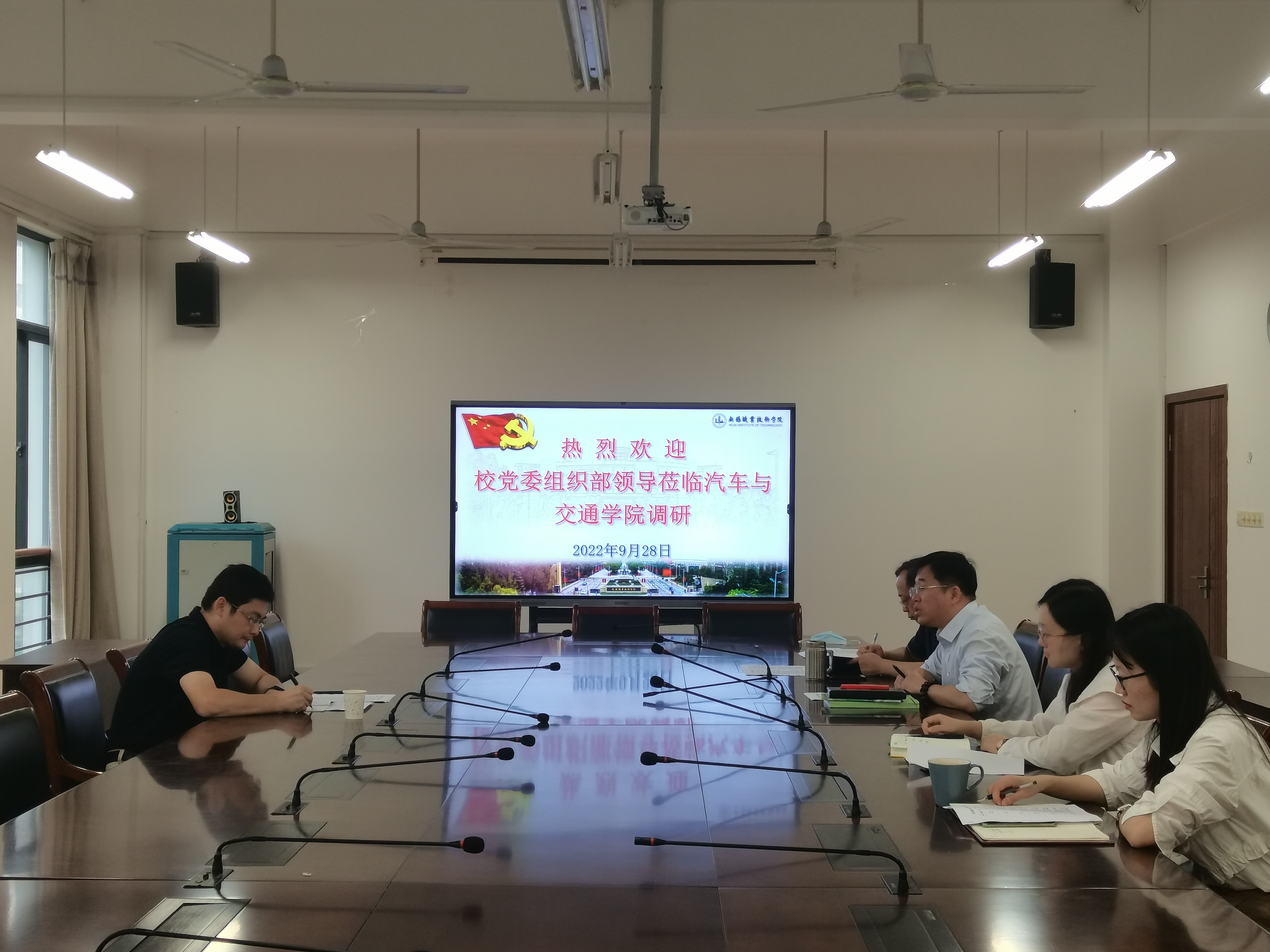 为更好了解基层党建工作具体情况,玛雅吧 党委委员、组织部长朱翔于9月28日上午走访汽车与交通学院进行调研。汽车与交通学院党总支书记邹晔、党总支副书记丁正荣,组织员高娜娜、学生党支部书记林姣姣、教工党支部组织委员陈珣参加了会议。