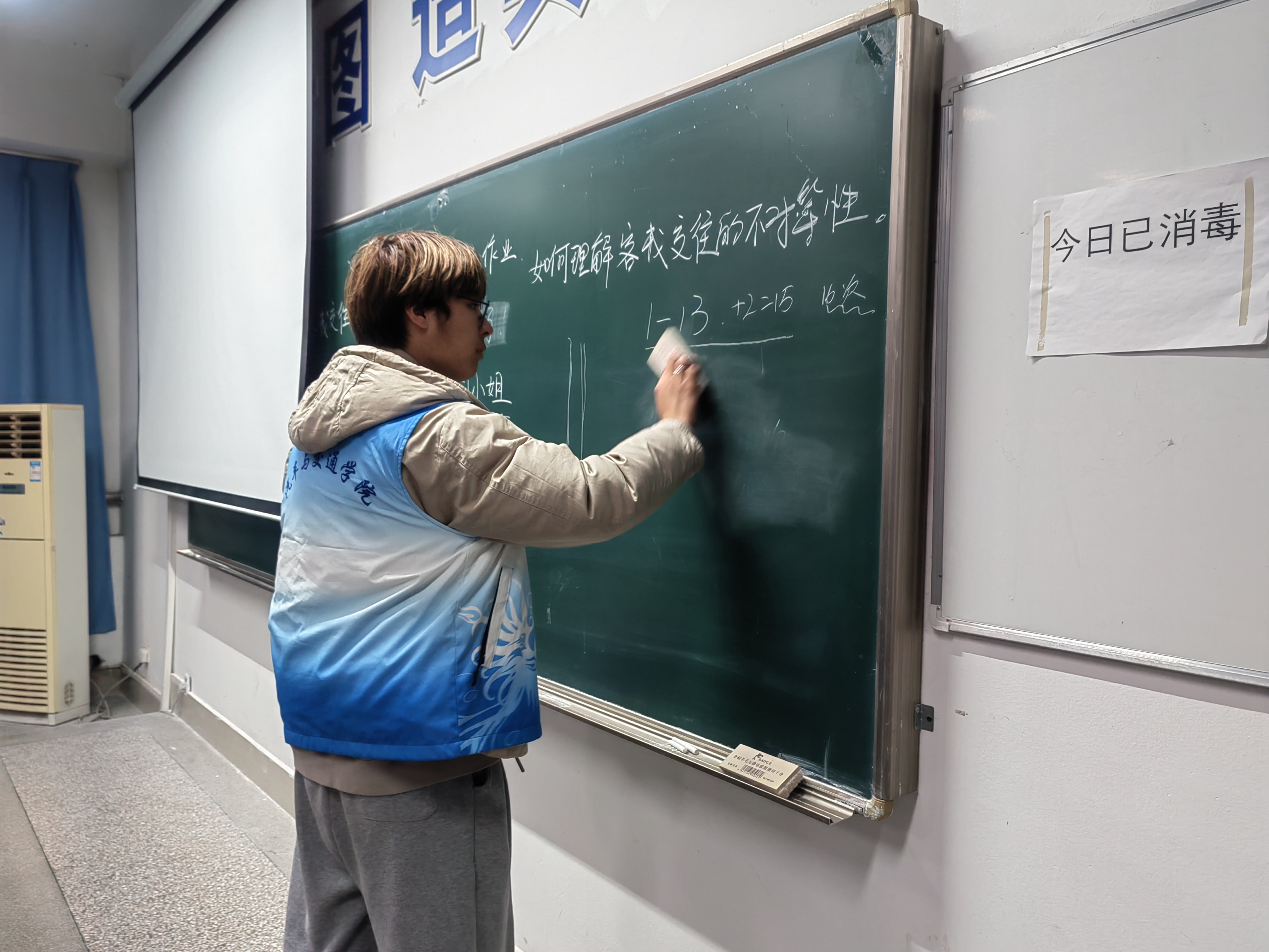 晚自习结束后,志愿者们拿着清洁工具安静有序进入各个教室。擦黑板、打扫地面、清理抽屉垃圾,志愿者们分工协作,充分发扬“不怕脏、不怕累”的精神。他们忙碌的身影形成了一道靓丽的风景线,努力做到发现一处、清理一处,不放过任何一个死角,只为了能给同学们打造一个干净整洁的学习环境。