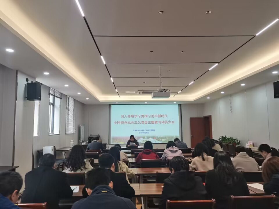 4月25日下午,汽车与交通学院党总支在工B-S206会议室召开学习贯彻习近平新时代中国特色社会主义思想主题教育动员部署大会。会议由学院党总支书记张美娟主持,全体党员参会。