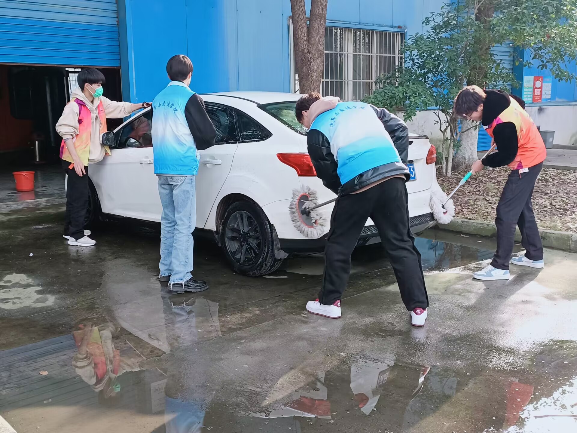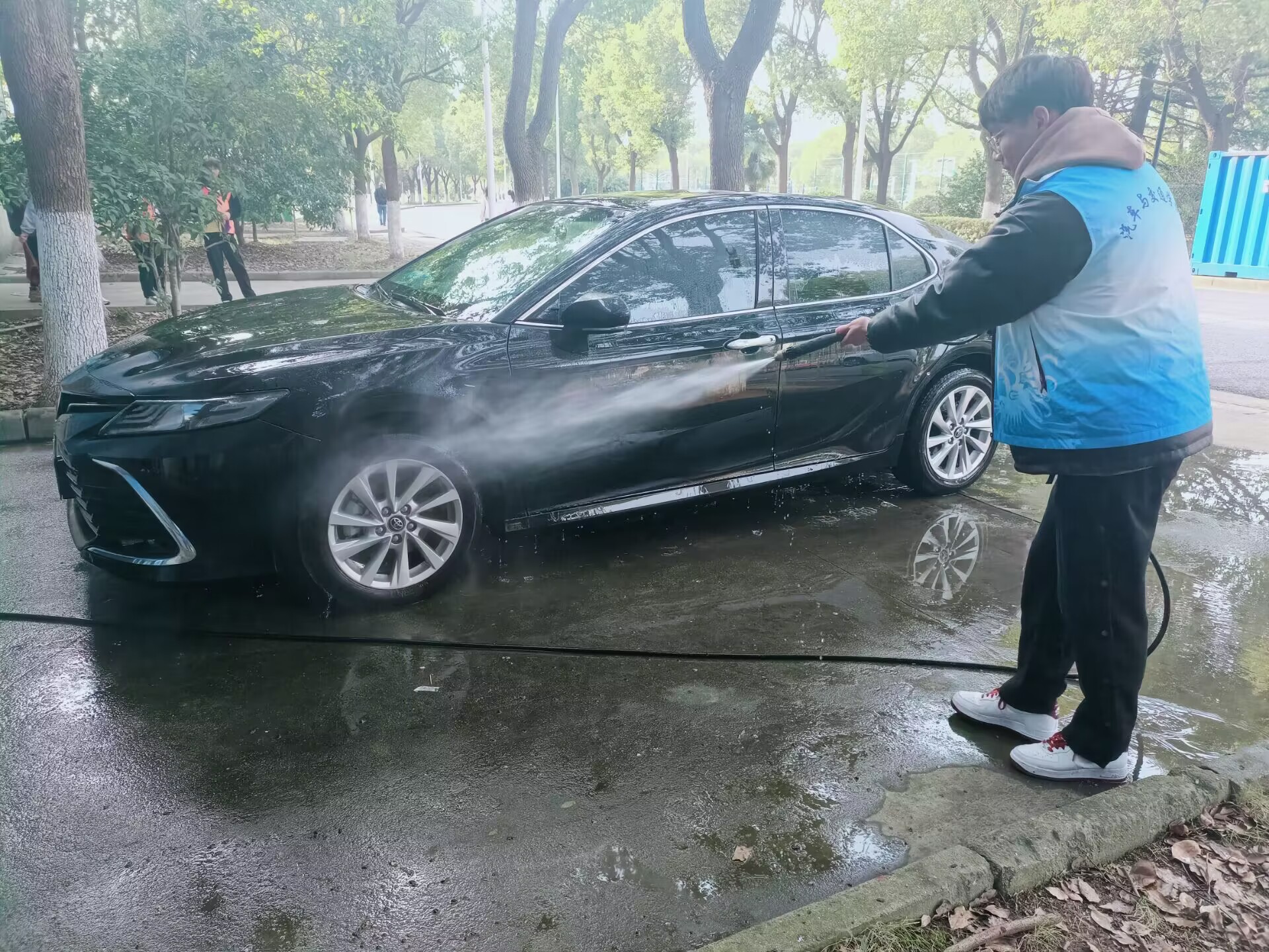 现场的学生志愿者们工作细致、分工明确,从汽车接待、喷水、喷洒泡沫、冲洗、擦干到交车,大家热情高涨,每个环节都按小组划分,有条不紊地进行着,同学们以劳动为荣,乐在其中,力争为老师们提供优质又专业的暖心服务。
