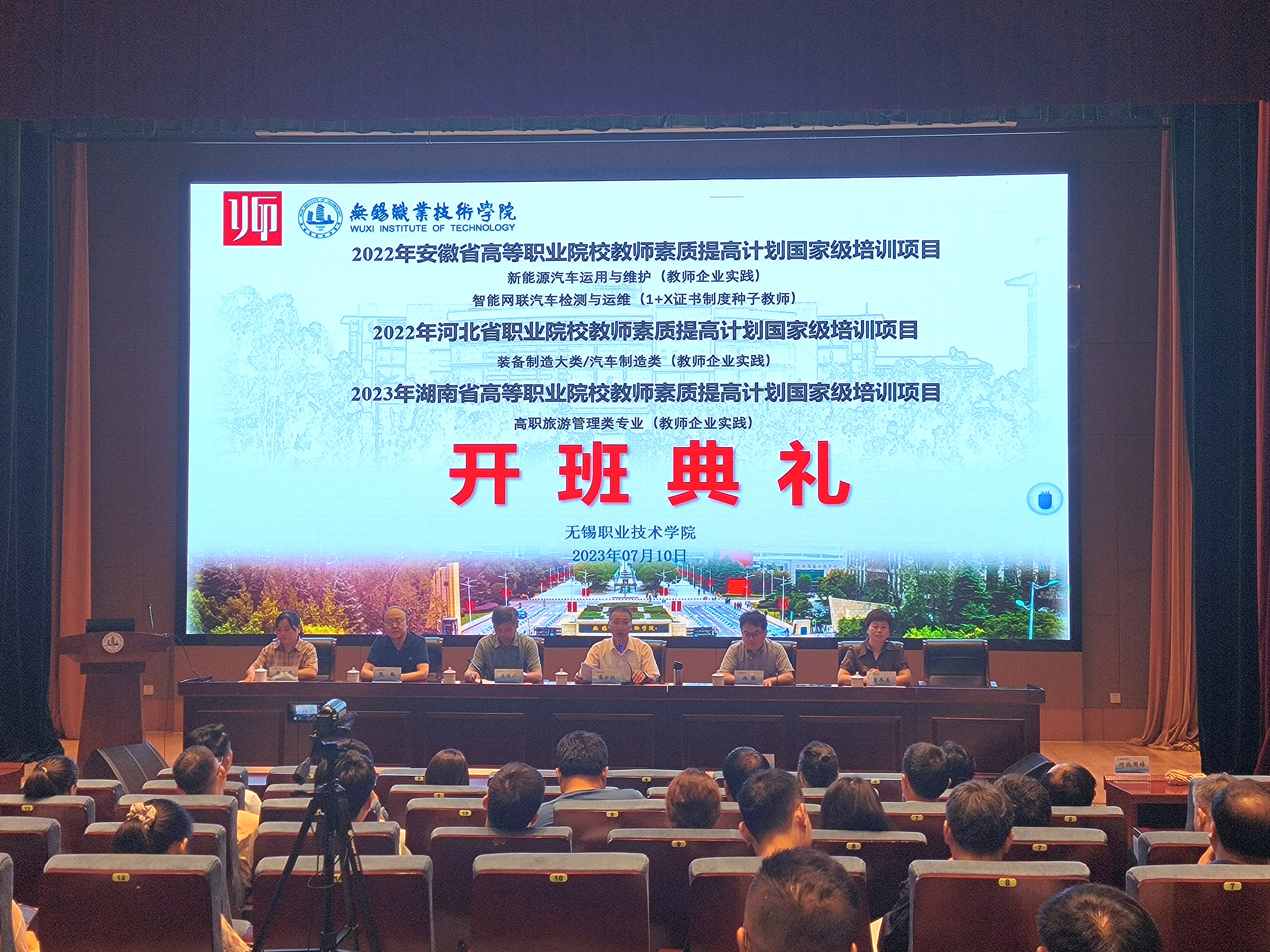 7月10日上午,“安徽省高职院校教师素质提高计划国家级培训项目——教师企业实践(新能源汽车运用与维护)培训班开班仪式在玛雅吧 厚德楼一楼报告厅顺利召开。安徽省高等学校师资培训中心常务副主任袁德水,安徽省高等学校师资培训中心常务副主任张韬、玛雅吧 党委书记龚方红、继续教育学院副院长曹冬美、玛雅吧 汽车与交通学院党总支书记张美娟出席了开班仪式。