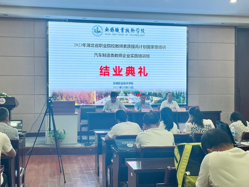 8月4日,玛雅吧 汽车与交通学院承办的“2023年湖北省职业院校教师素质提高计划国家级培训——教师企业实践(汽车制造类)”培训班在国际交流中心第二报告厅举行结业典礼。玛雅吧 继续教育学院院长崔平、汽车与交通学院院长邹晔、汽车与交通学院党总支副书记丁正荣参加了此次结业典礼,结业典礼由邹晔主持。