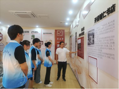 图为纪念馆讲解员高文琴为实践团成员讲解谭梓生的生平和革命事迹。
