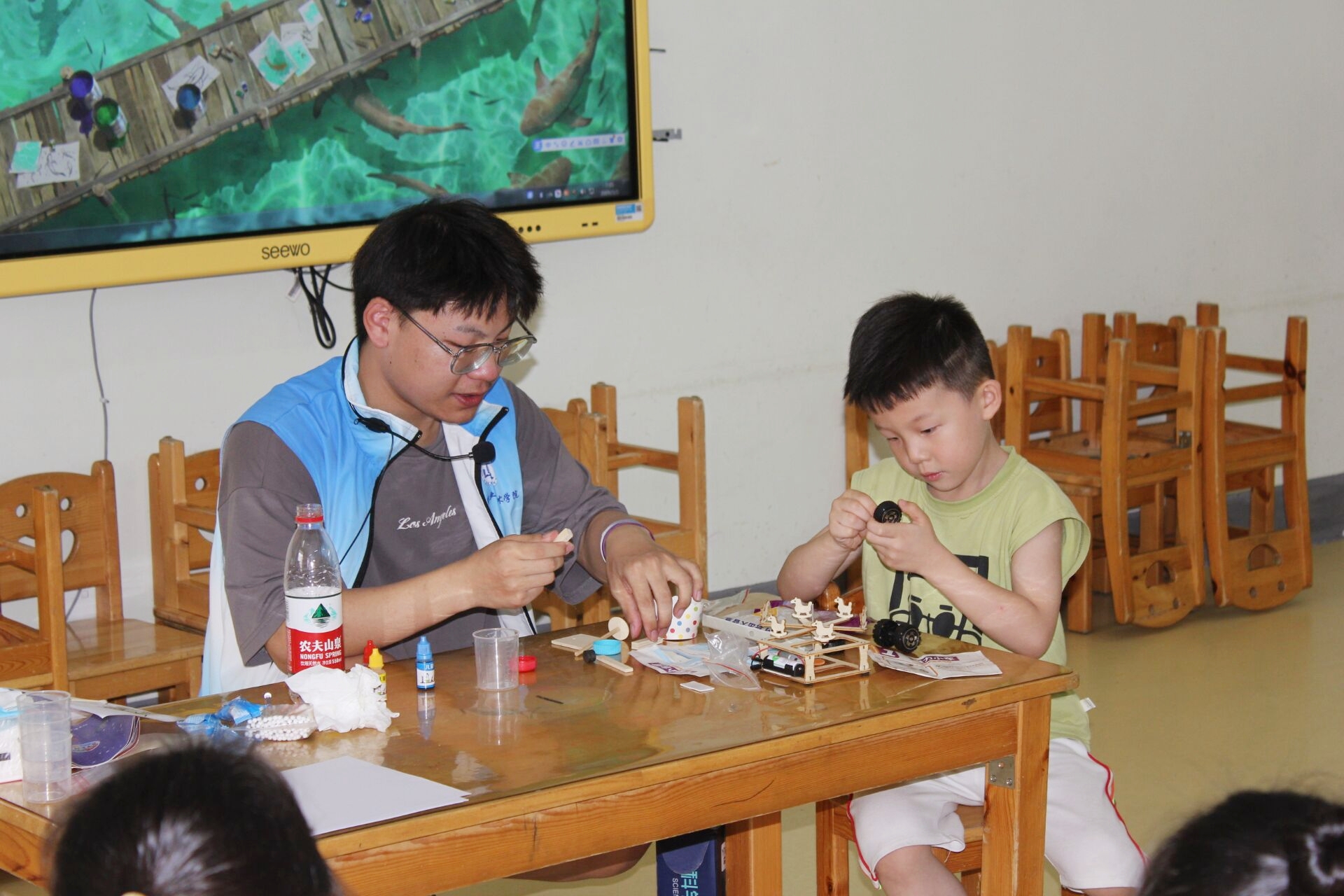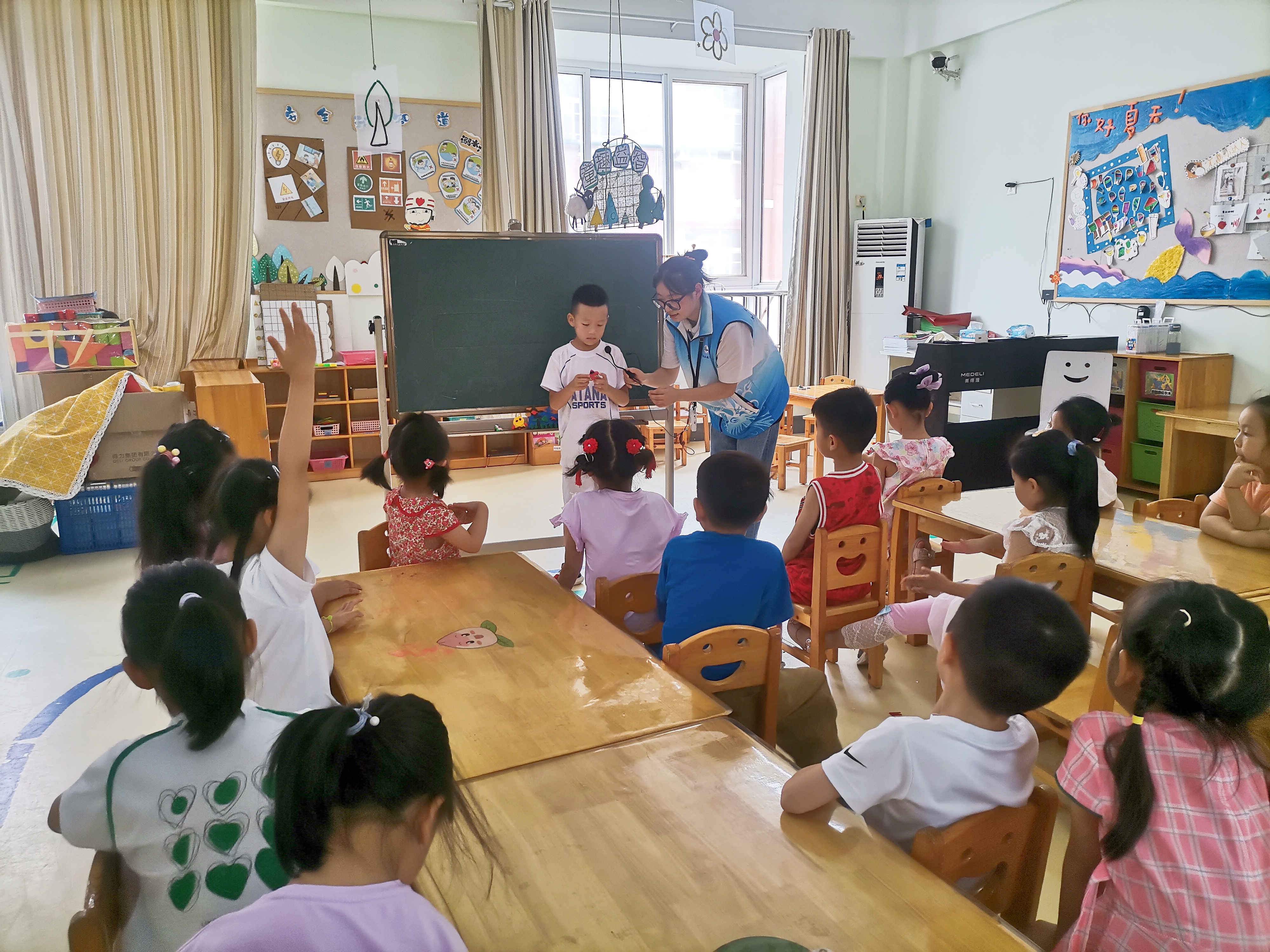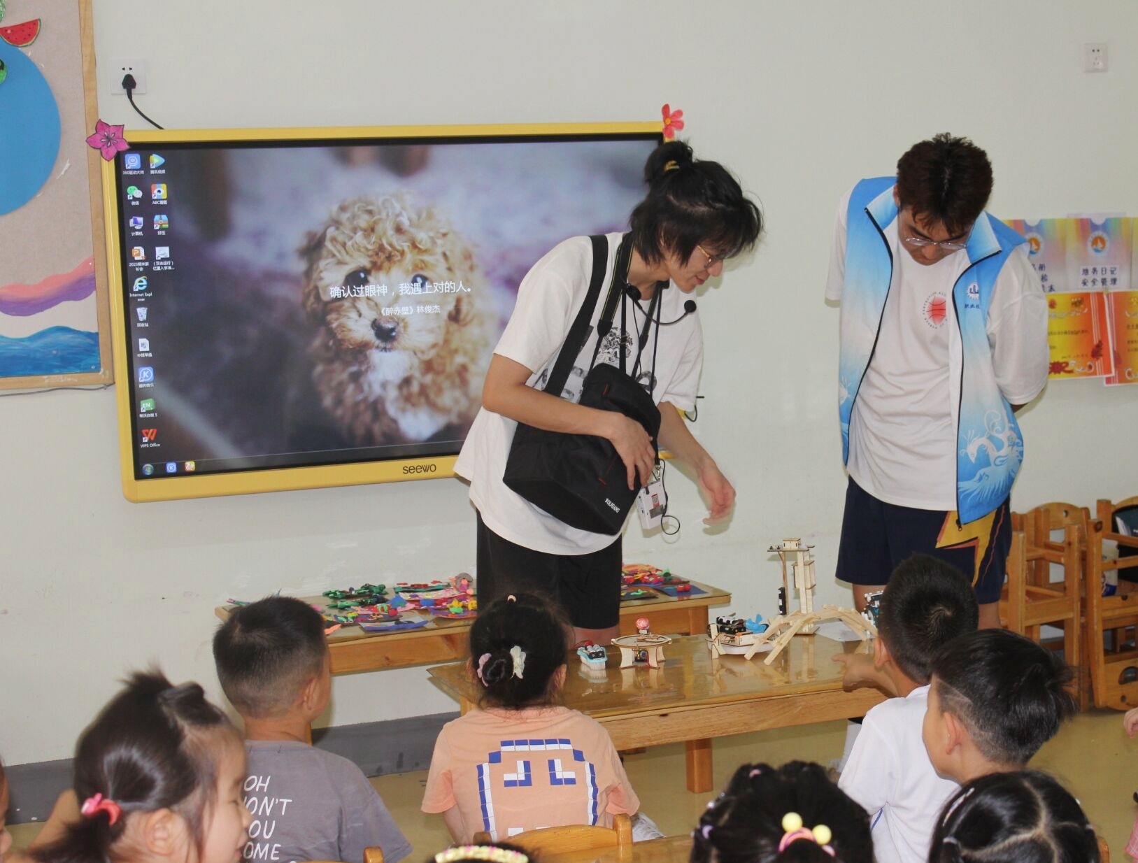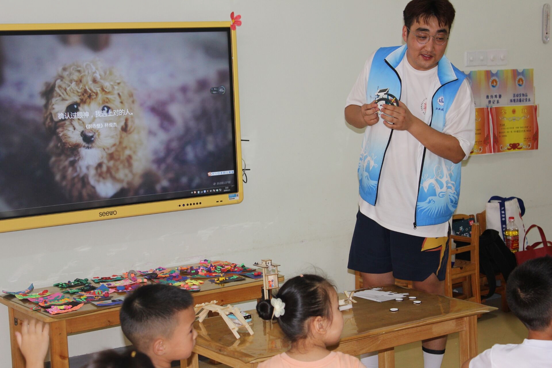为锻炼儿童的动手能力,激发他们的创造潜能,7月7日,玛雅吧 汽车与交通学院“星火筑梦”2.0实践团前往安徽旌德县东方幼儿园两个大班开展了“信手‘粘’来,随心所欲”泥塑活动、“不可思议的神奇现象”科学小实验以及“创意手工”科技小制作活动。泥塑活动中,实践团成员为小朋友讲解超轻粘土特性、工具使用方法、色彩搭配和作品外在修饰等,小朋友们利用压、搓、捏、团、揉等基本技能,制作出了栩栩如生的花朵、海底世界、小动物等。在科学小实验活动中,实践团成员为小朋友准备了“无字天书”“调色大师”“彩虹雨”“水吹气球”和“水的张力”等有趣的科学小实验,并为小朋友讲解实验原理,小朋友们发出阵阵惊叹。在科技小制作中,实践团成员细心为小朋友讲述拼装步骤,并和小朋友们一起完成了电动旋转木马、简易小台灯、机器人、倍力桥等的组装。此次活动中,小朋友的积极性、创作欲被激发,好奇心和探究热情被点燃,实践团成员与幼儿园小朋友大手拉小手,传递青春正能量,为促进乡村振兴、学前儿童教育事业发展贡献了青年学子的力量。