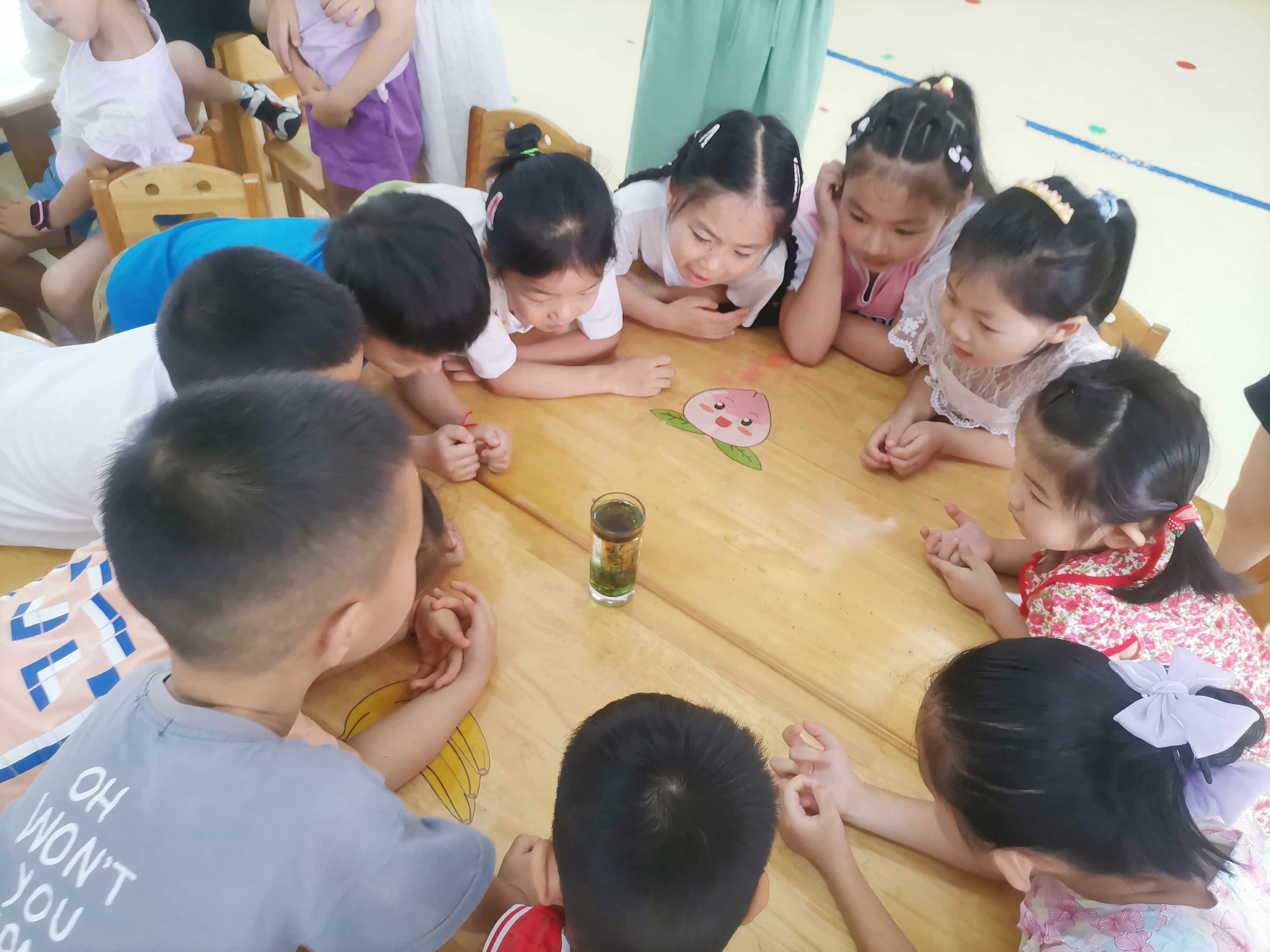 图为实践团成员在做“水的张力”科学小实验。