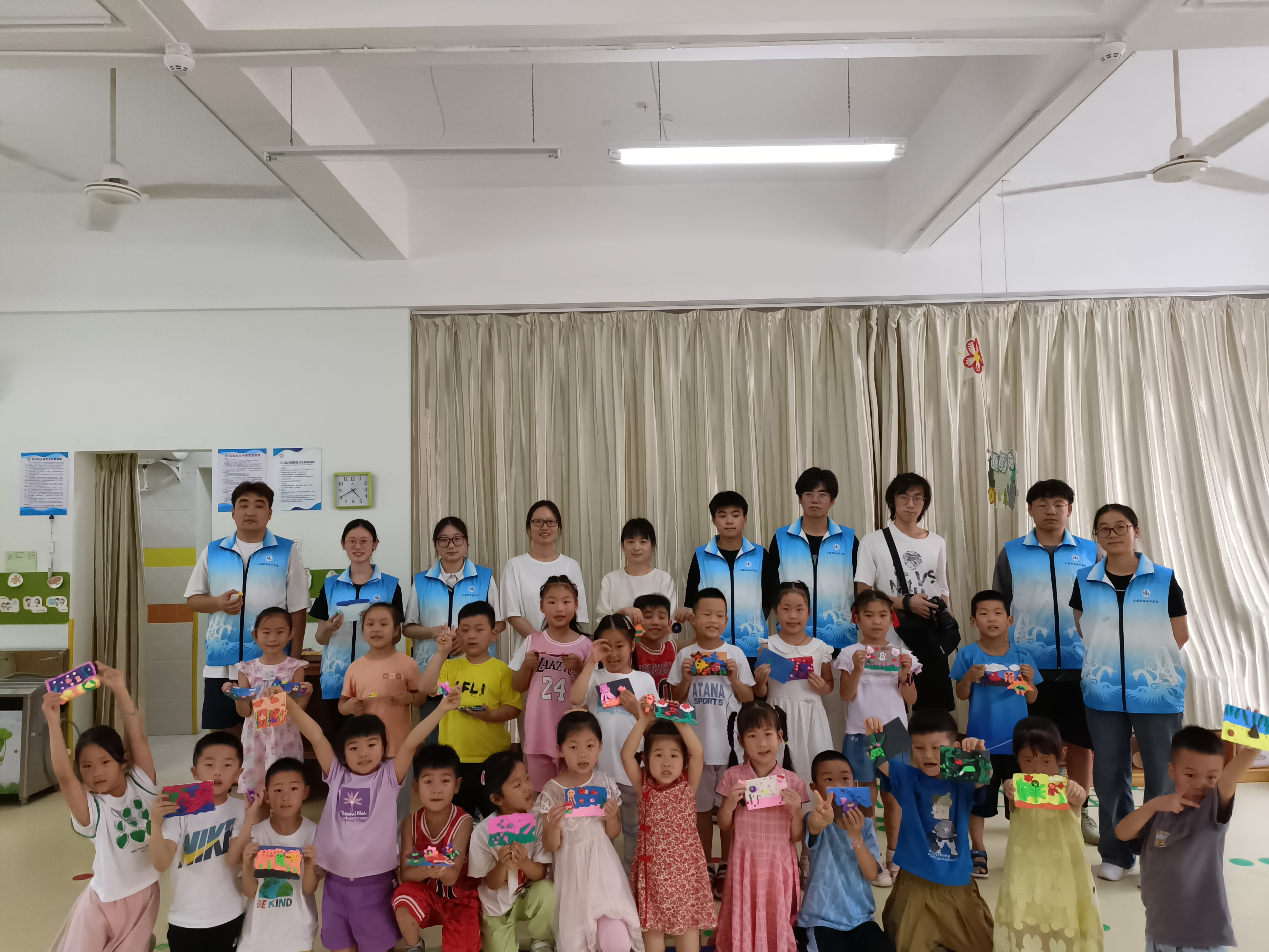 图为实践团成员和幼儿园师生一起合影留念。