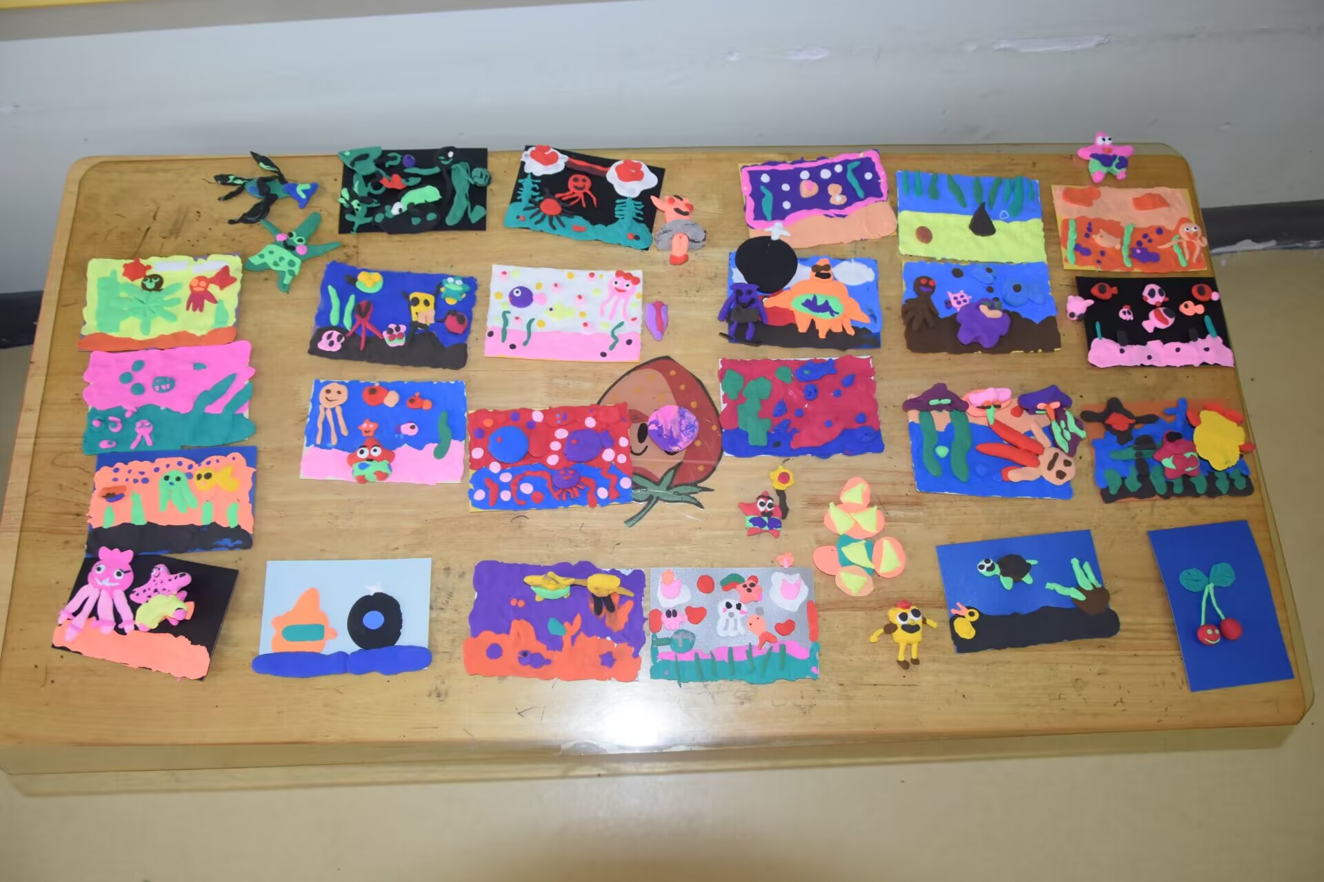 图为小朋友制作的部分泥塑作品。