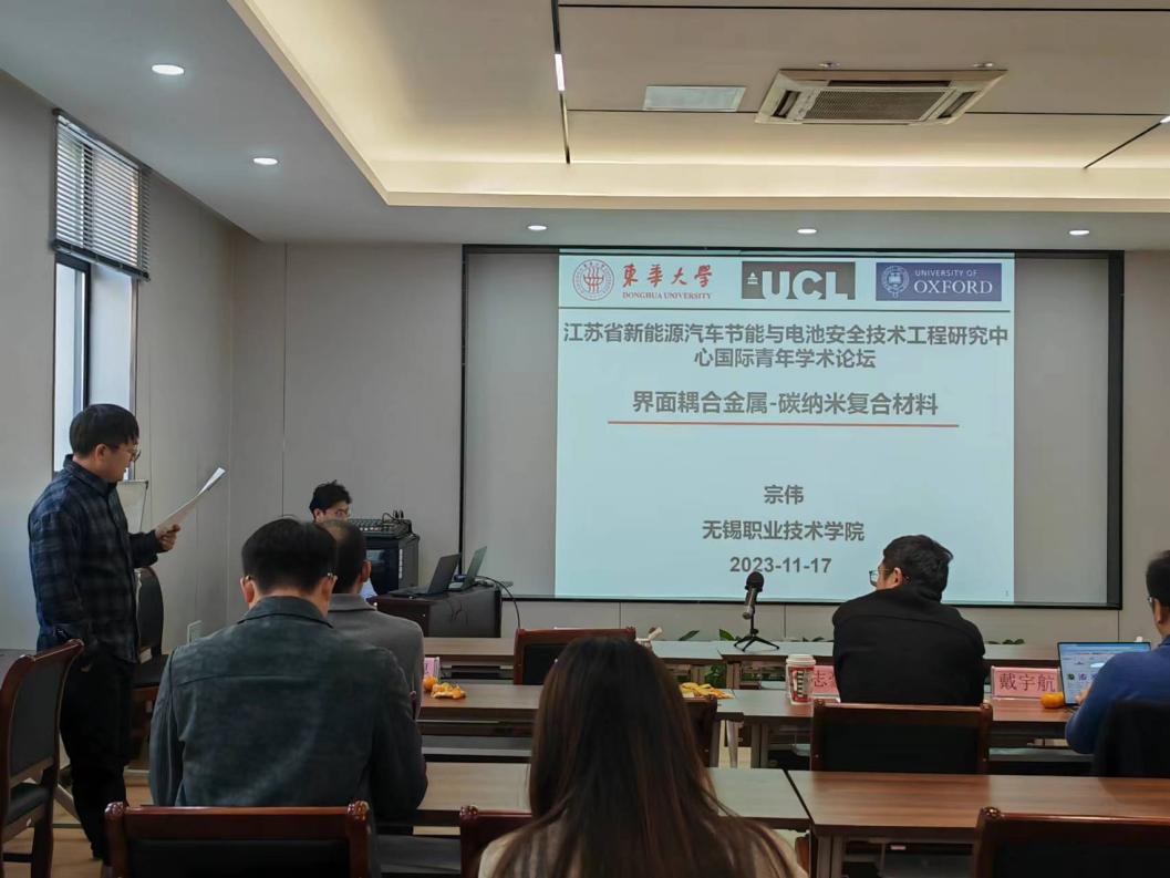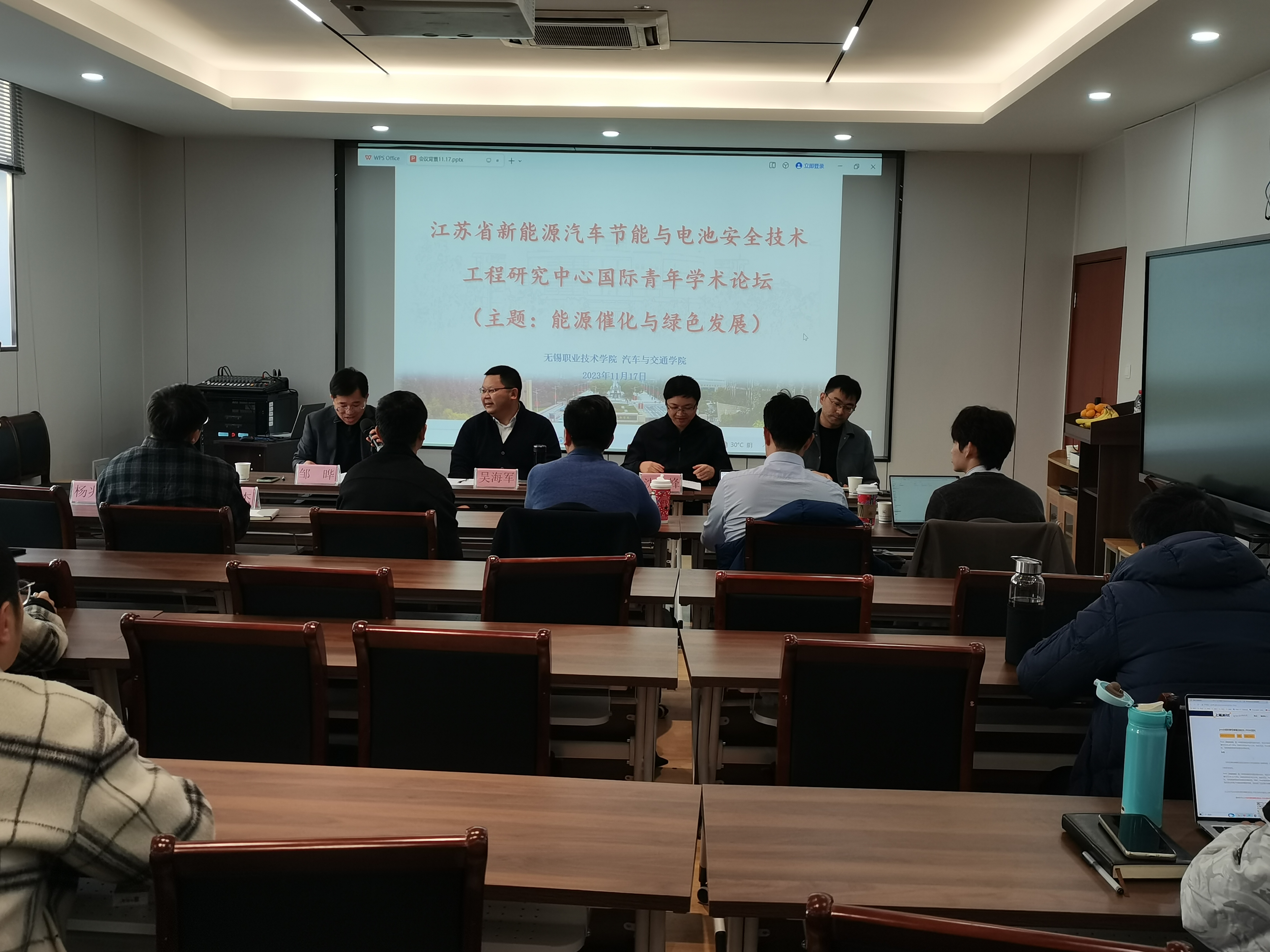 为进一步提升汽车与交通学院青年教师的科研能力和学术水平,促进汽车学院科研的高质量发展,11月17日下午,我院举办江苏省新能源汽车节能与电池安全技术工程研究中心国际青年学术论坛,主题为能源催化与绿色发展。无锡市发改委代表吴海军、无锡市滨湖区科技局代表沈奇峰、学校科技处副处长钱王欢、企业代表梅志豪、汽车学院院长邹晔以及学院青年教师等20余人参加沙龙活动。