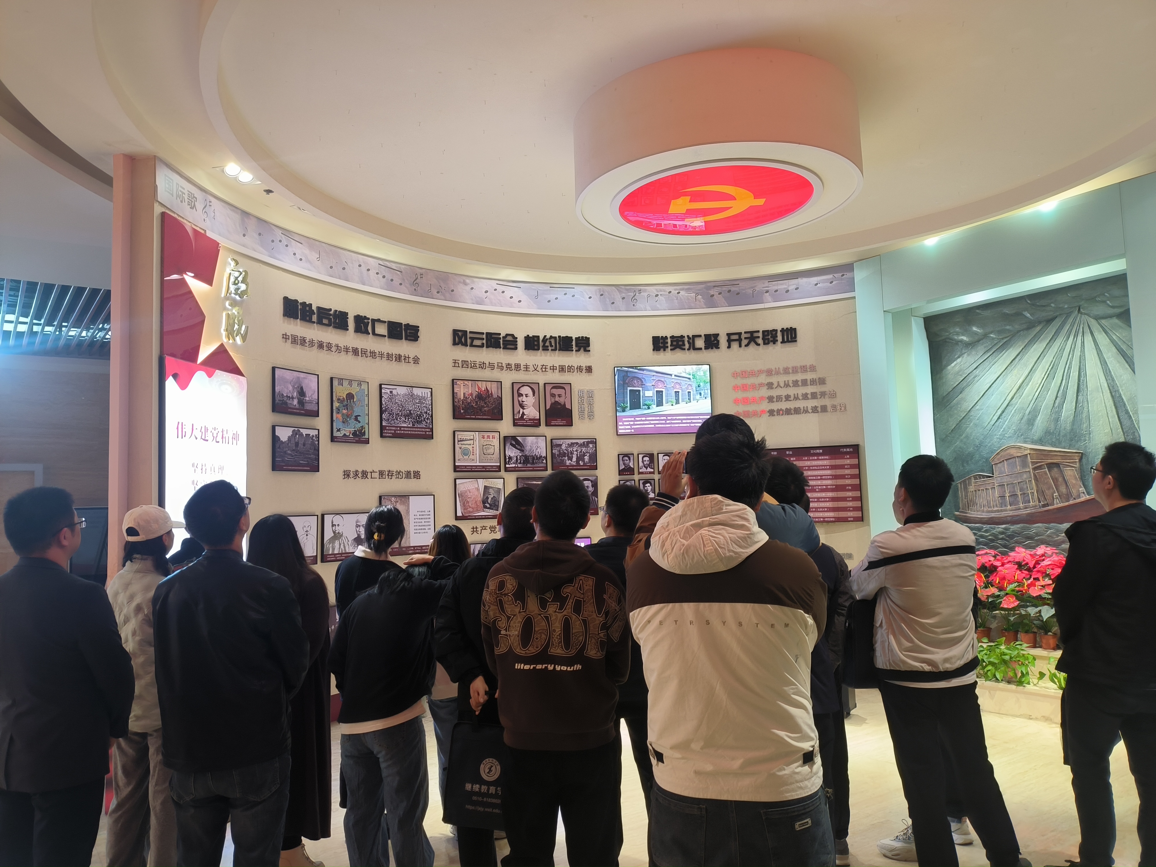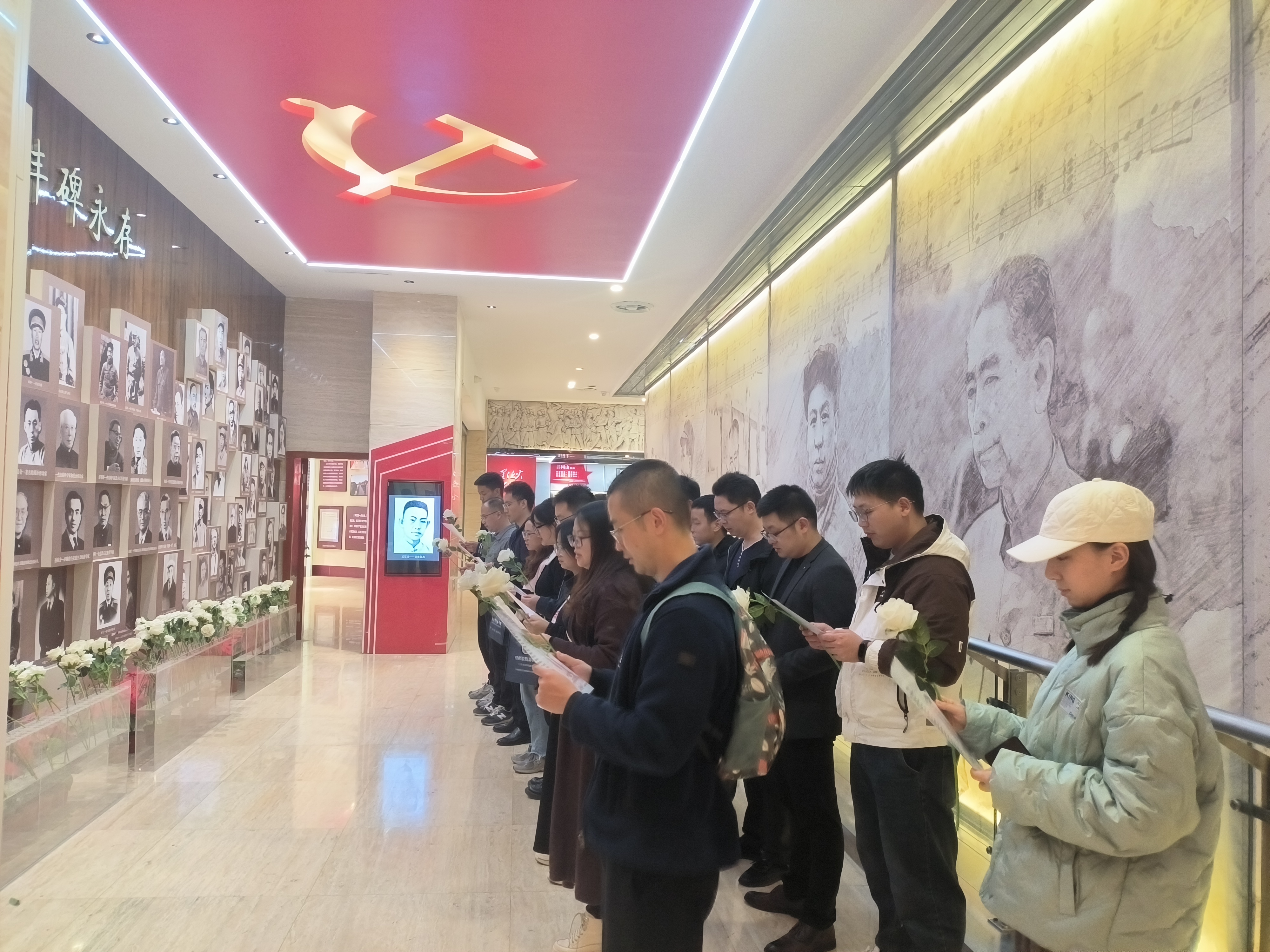 在滨湖党建馆,大家在讲解员的带领下,首先,以中国共产党红色精神为主线,参观了起航、星火、圣地、烽烟、黎明、奋斗、复兴、丰碑等8个专题展厅,学习了红船精神、井冈山精神、延安精神、西柏坡精神、红旗渠精神、载人航天精神等40种中国共产党在不同时期形成的伟大红色精神。百年党史所孕育的红色精神,展现了中国共产党人前赴后继、拼搏不息的伟大精神特质,大家也从红色基因中汲取勤劳勇敢、自强不息、艰苦奋斗的精神力量。其次,来到展馆悼念墙前朗诵缅怀诗并献花,缅怀那些前仆后继、英勇无畏的革命先烈,秉承烈士血脉开创的道路,深刻学习革命烈士坚守信念,传承先烈遗志,践行初心使命。再次,在观影室集体观看《百年历程中的伟大精神》与《红色之路》影片,深刻感悟中国共产党的初心使命、精神伟力与真理智慧。最后,党员同志面对党旗再次郑重宣誓,表明自己的初心和决心。