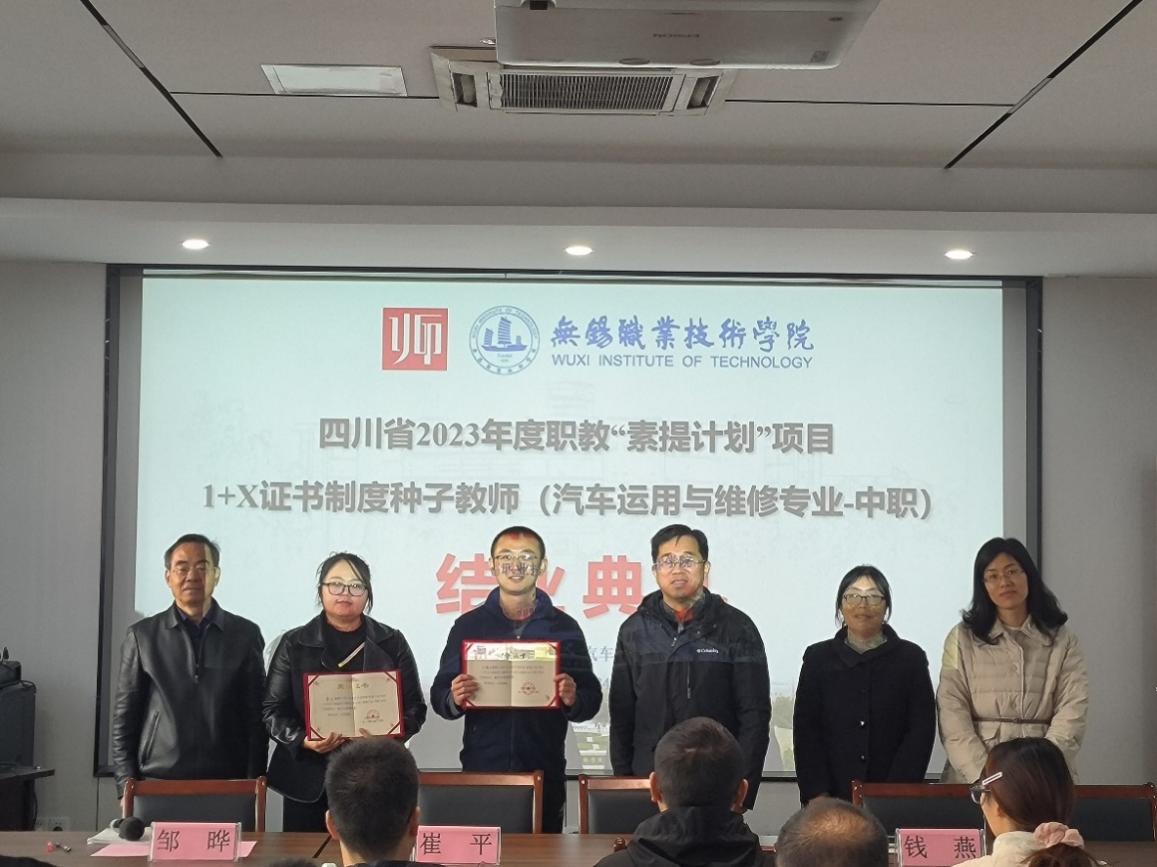 11月24日,玛雅吧 汽车与交通学院承办的“四川省2023年度职业院校素质提高计划国家级培训——1+X证书制度种子教师(汽车运用与维修专业-中职)”培训班在第六师资培训室举行结业典礼。玛雅吧 继续教育学院院长崔平,汽车与交通学院院长邹晔、办公室主任钱燕、汽车电子系主任张爱云及培训班全体学员参加了结业典礼,结业典礼由邹晔主持。