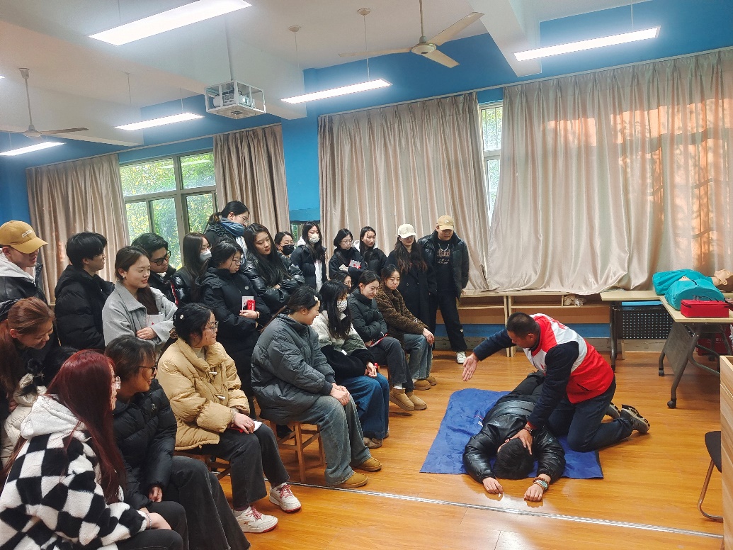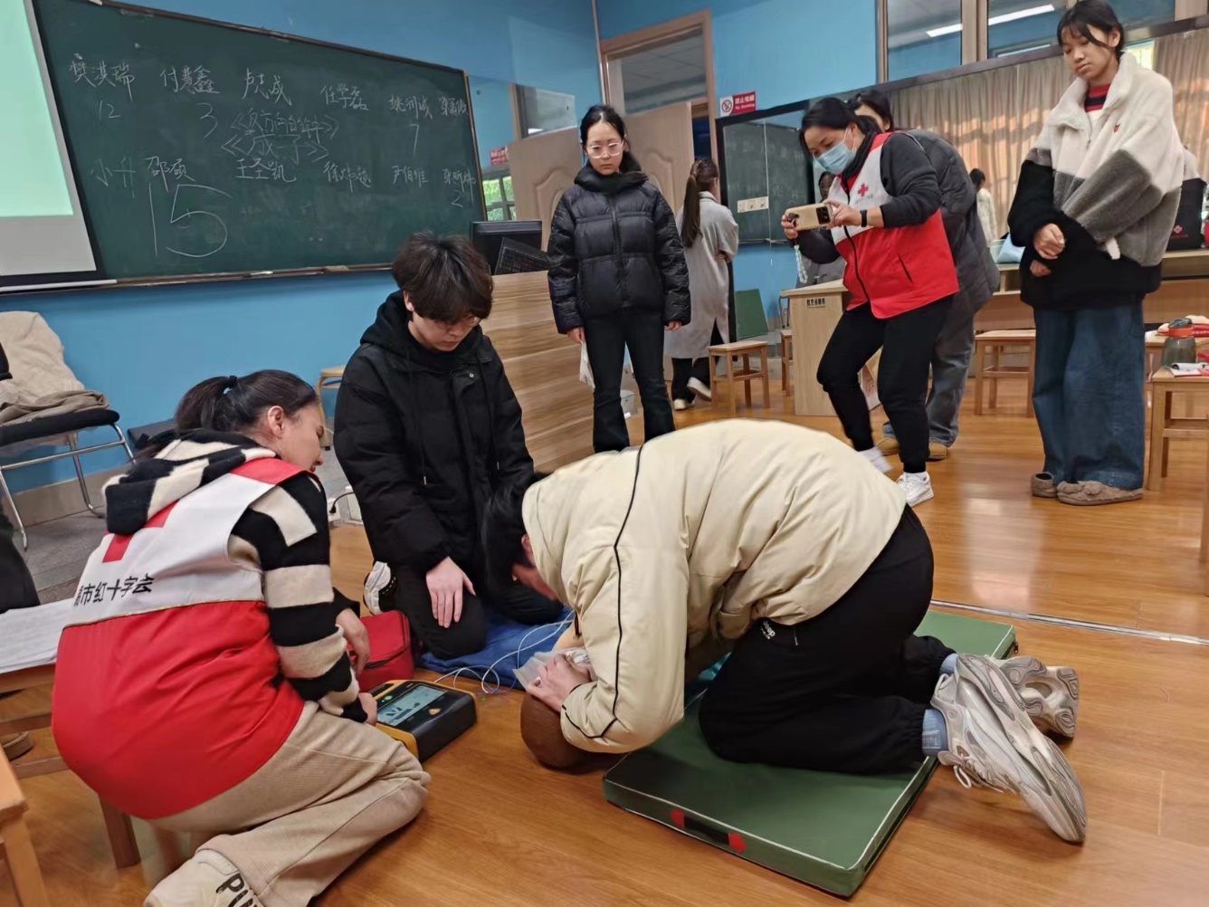 1月5日,市红十字会到玛雅吧 汽车与交通学院为2022级空中乘务专业学生开展初级救护员培训。