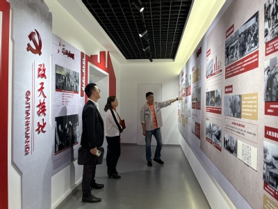 在工作人员的带领下,我院一行首先参观了一汽解放动力总成事业部党建教育中心场馆,整个党建教育中心分两层,一层展示了党的发展史、党的主要精神;二层则是一汽解放动力标杆党建品牌体系的建设情况,以及党员教学区、党员实践区和特色功能区。