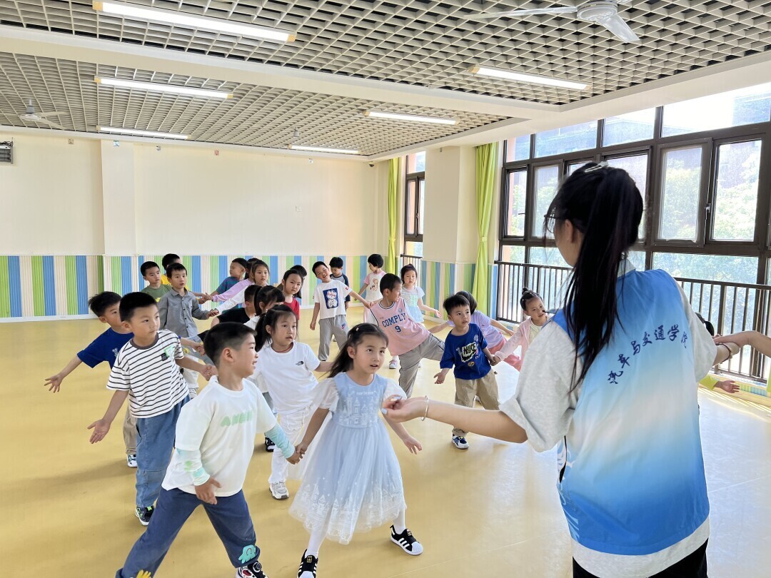 小动作也有大作用,在舞蹈室中,志愿者为小朋友们带来了精心准备的手势舞《小花朵》和《左手右手》。看见志愿者们的演示,小朋友们都跃跃欲试,迫不及待地想要加入进来。练习中每个小朋友都对手势舞表现出了极大的兴趣,手指动作从生疏到熟悉,最后在志愿者的悉心指导下,一起完成了手势舞的表演,提升了幼儿手指的灵活性和协调性。