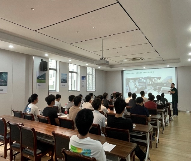 活动伊始,理想汽车的经理们首先在汽车学院院长邹晔和副院长游专的陪同下参观了学院的实训室,随后在学院206会议室开始了企业文化授课。