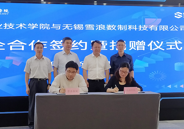 6月11日,我校与无锡雪浪数制科技有限公司校企合作签约暨捐赠仪式在雪浪小镇展示厅举行,校领导朱爱胜、龚方红、吴慧媛及科技产业处、智能制造工程中心相关人员,无锡雪浪数制总裁王峰、副总裁姜其强,无锡市经济开发区党工委副书记、管委会副主任杨建平等出席活动。