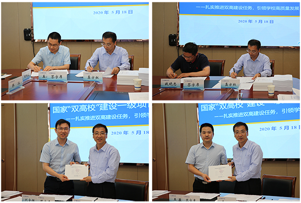 会议由党委副书记周桂瑾主持。龚方红校长回顾了我校“双高”校建设方案完善及任务书编制情况,从增强荣誉感、责任感、紧迫感等三个方面提出希望,并代表学校与各项目负责人依次签署“双高校”建设目标责任书。