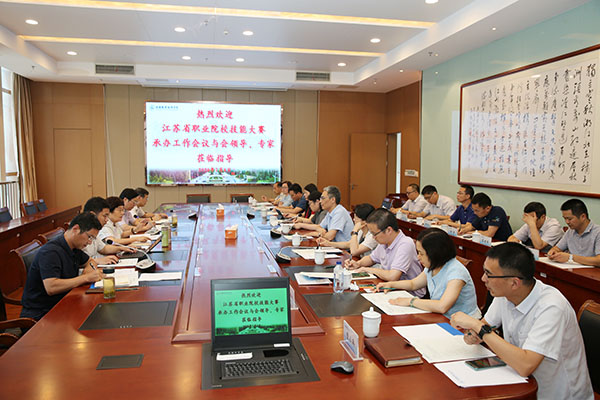 为进一步规范和推进江苏省职业院校技能大赛各赛项组织工作,7月8日下午,江苏省职业院校技能大赛组织委员会在我校召开无锡承办高职赛项组织工作会议。江苏省职业院校技能大赛组委会秘书长张铎、装备制造大类专家组长周明虎、组委会办公室卞凌晶副主任,我校党委副书记周桂瑾、无锡商业职业技术学院副院长桂海进、江苏信息职业技术学院副院长孙萍、无锡旅游商贸高等职业学校旅游系系主任冯霞敏以及各校职能处室负责人、赛项筹备专业负责人参加会议。