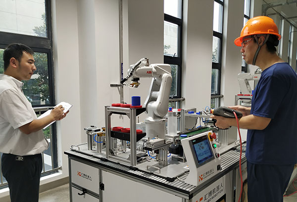 7月17日下午,“首届工业机器人应用编程1+X培训班”结业典礼在产教融合大楼一楼,吴慧媛副校长及人事处、控制技术学院相关负责人、全体参训教师参加了活动。