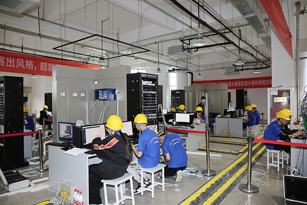 计算机网络应用赛项应用企业真实项目,结合企业岗位技能需求及教学需求,在4小时内完成一定规模的智慧园区网络,考核参赛选手无线网络规划与实施、设备基础信息配置与验证、网络搭建与灾备方案部署、移动互联网搭建与网优、出口安全防护与远程接入、云计算服务搭建与企业应用、综合布线规划与设计、赛场规范和文档规范等方面技能。我校参赛队由物联网技术学院刁春娟、林峰老师指导,网络31831班余浩男、网络31831班韦云峰、网络31931班盛文龙同学组队夺得第一名。