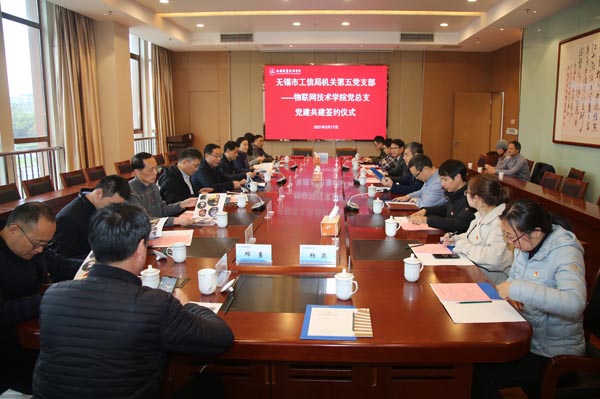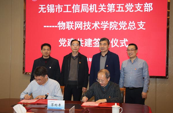 3月17日下午,无锡市工业和信息化局机关第五党支部和我校物联网技术学院党总支合作共建签约仪式在综合楼F201会议室举行。无锡市工业和信息化局副局长王荣明、调研员杨孟祥、企业发展处处长郭波,我校党委书记朱爱胜、物联网技术学院党总支书记周陆飞、物联网技术学院副院长蔡建军及合作共建支部的党员同志参加了活动。