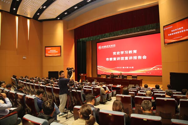 4月26日下午,学校在综合楼一楼报告厅举办党史学习教育宣讲会,党史学习教育市委宣讲团成员顾伟黎副教授作题为《百年风华 辉煌历程》的主题宣讲,全体校领导、中层以上干部,全体辅导员,马克思主义学院全体教师到场聆听。