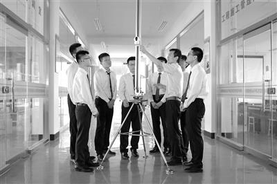 日照职业技术学院积极推进课程体系建设与改革,图为该校师生团队调试自主研发的测绘数据采集装置。