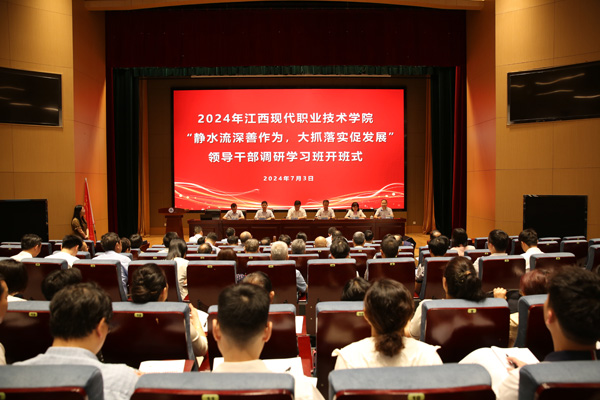 7月3日上午,由江西现代职业技术学院委托、我校管理学院承办的“静水流深善作为、大抓落实促发展”领导干部调研学习班在厚德楼辅楼一楼报告厅开班。
