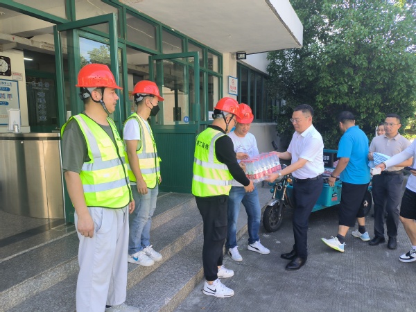 为确保暑假期间各项后勤保障工作到位,7月18日上午,副校长储开峰带领保卫处、后勤处、基建处等部门相关负责人,深入校内重点工程施工现场及学生公寓楼,对暑期安全风险高、易出现安全隐患区域进行安全检查,走访慰问酷暑期间仍坚守一线岗位的施工队伍、安保队伍、基建后勤等保障人员,并送上防暑降温物资。